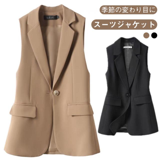 ライトアウター レディース ノースリーブ スーツベスト ジレ ベスト 羽織り ワンボタン スーツジャケット テーラード ジャケット 春 秋 30代 40代 カジュアル キレイめ