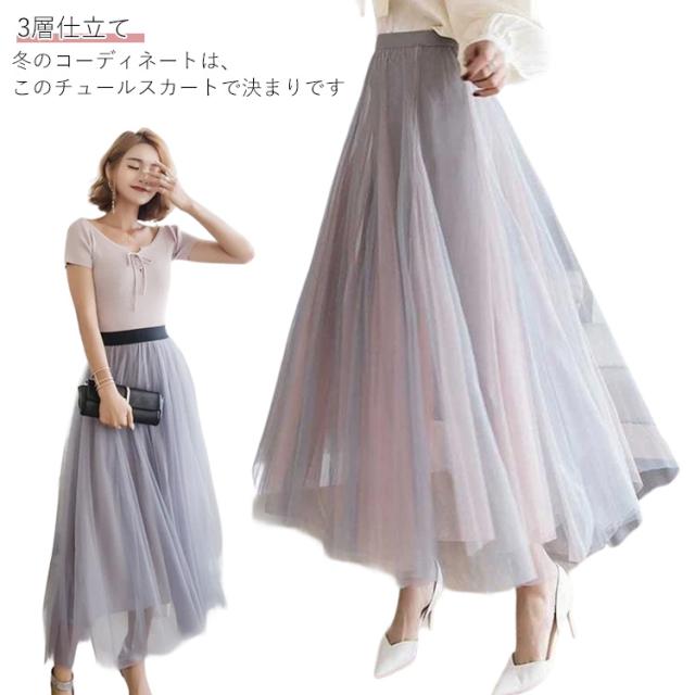 大人 スカート ロング 大人 膝下 ボトムス フレアスカート チュール ひざ下 ロング丈 レディース 秋冬 aライン 秋 ミモレ丈 フレア マキシ 演奏 大きいサイズ