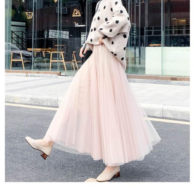 | 冬のコーディネートは、このチュールスカートで決まりです。 ニットや、トレーナーとも合わせやすく ボリュームウエストのゴムとギャザーがシルエットを綺麗に見せてくれます。 上品で女性らしい雰囲気を出せます。 トップスインでウエストラインはスッキリ。便利なサイドポケットが付いております | |