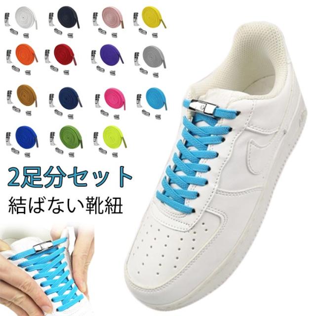2足分セット 靴紐 結ばない 靴ひも シューレース ゴム 伸びる靴紐 ストレッチ ハイカット スニーカー カプセル バックル ロック レースロック ワンタッチ 無地 シンプル 100cm 長い