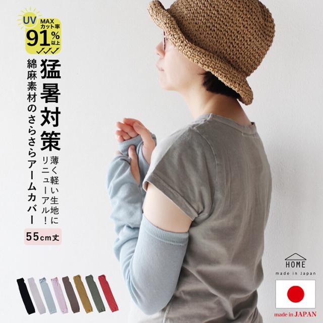 ◆日本製・綿麻素材のさらさらアームカバー(55cm丈)【HOME】◆