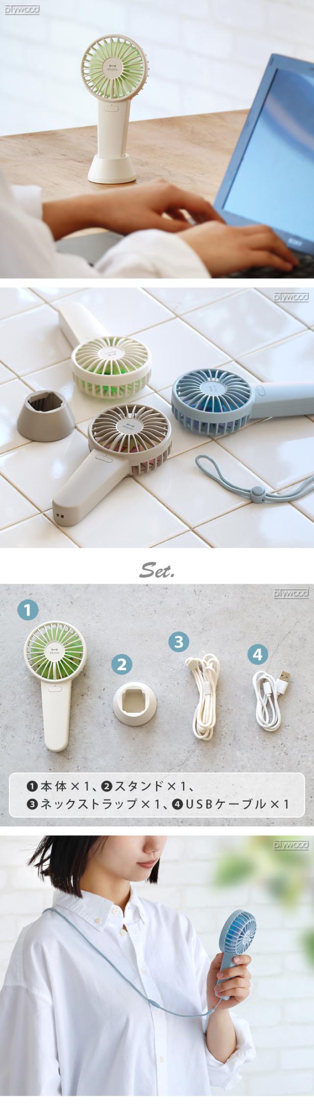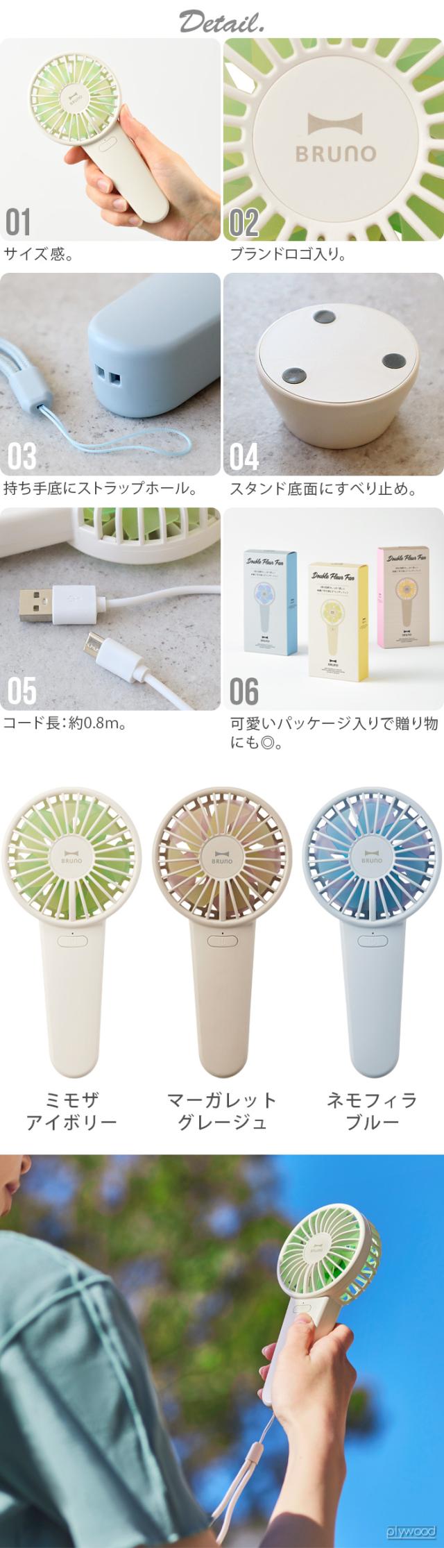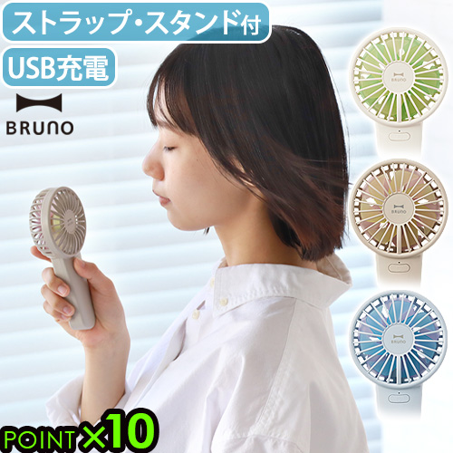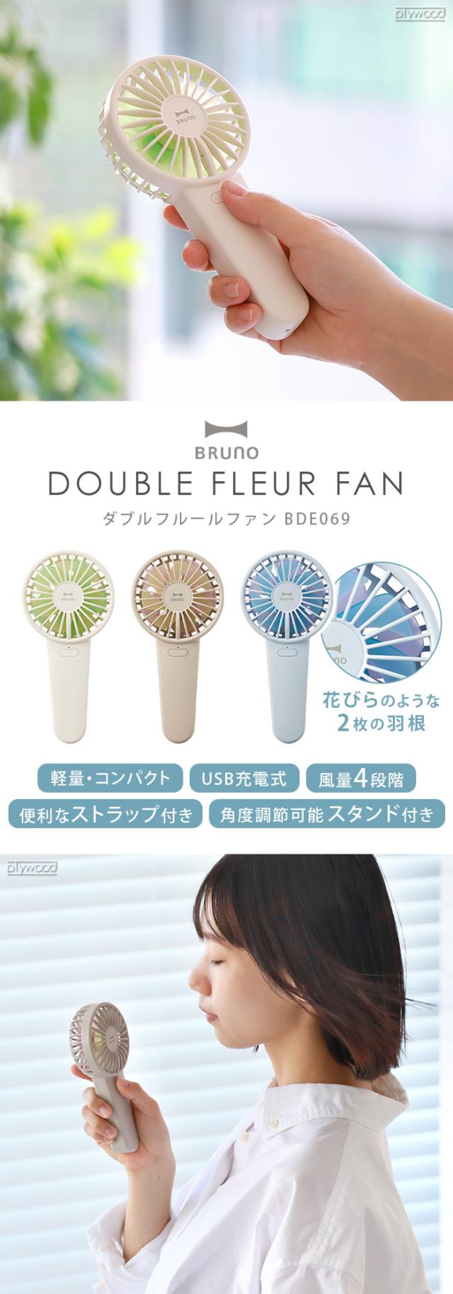 ハンディーファン 扇風機 ハンディ 小型 ハンディファン 首かけ 手持ち BRUNO ダブルフルールファン BDE069 ブルーノ USB dcモーター 卓上 せんぷうき 4段階 スタンド USB充電式 卓上 風量調節 卓上扇風機 ストラップ付き 誤作動防止 送料無料 P10倍