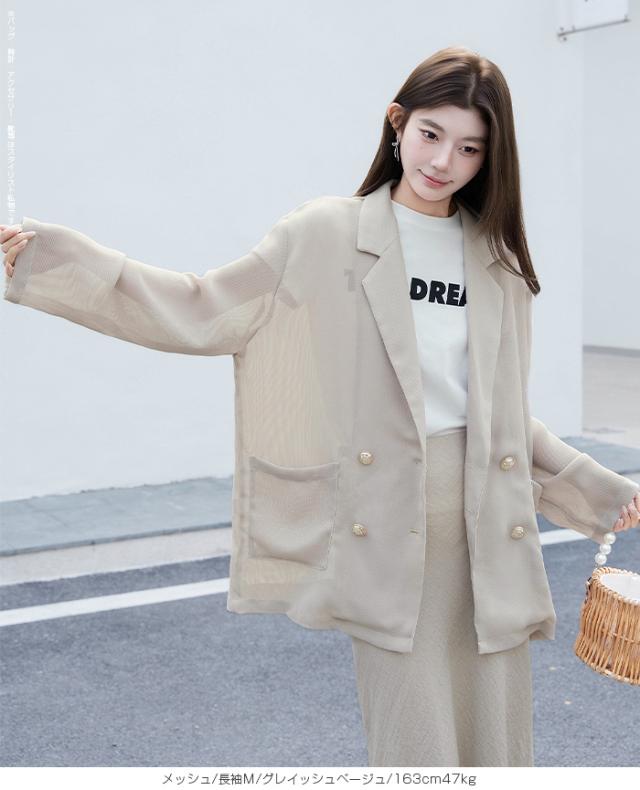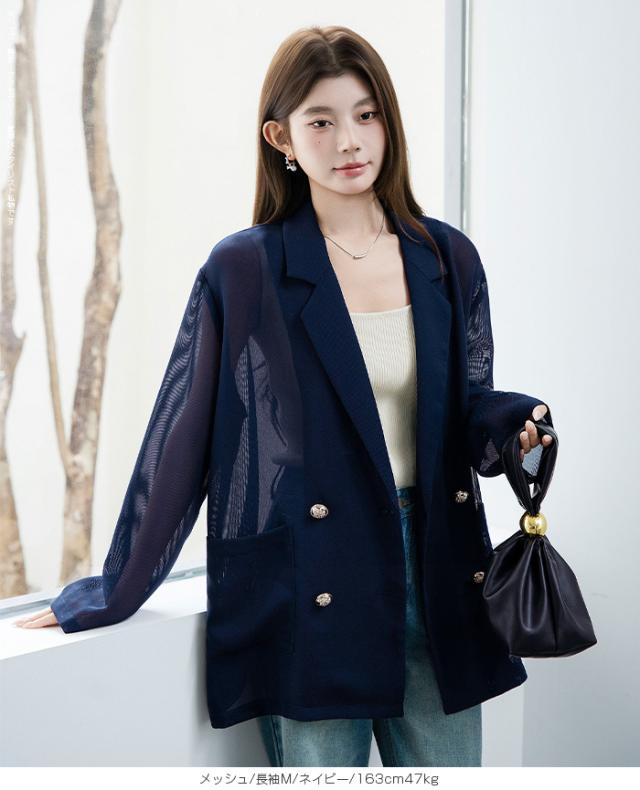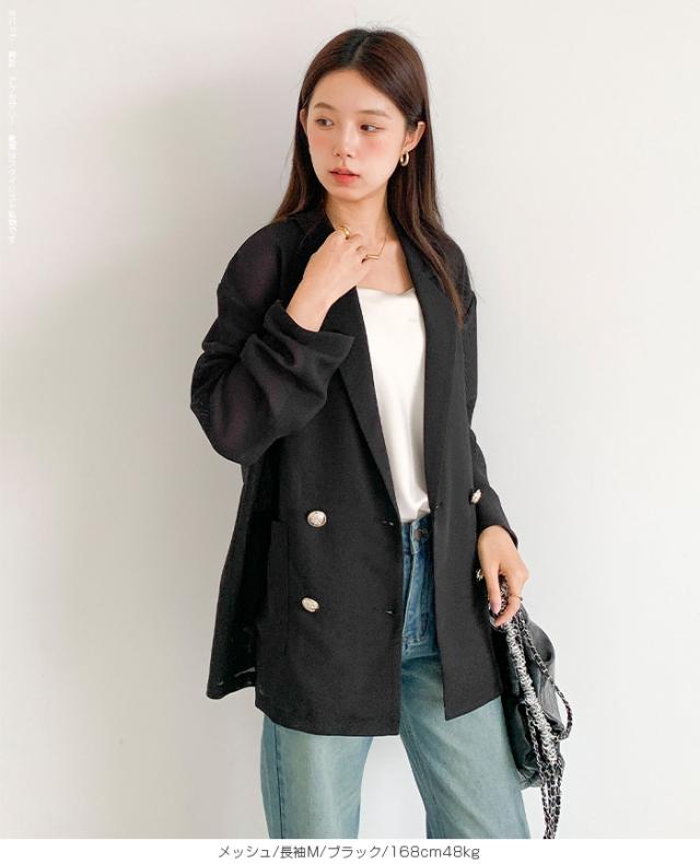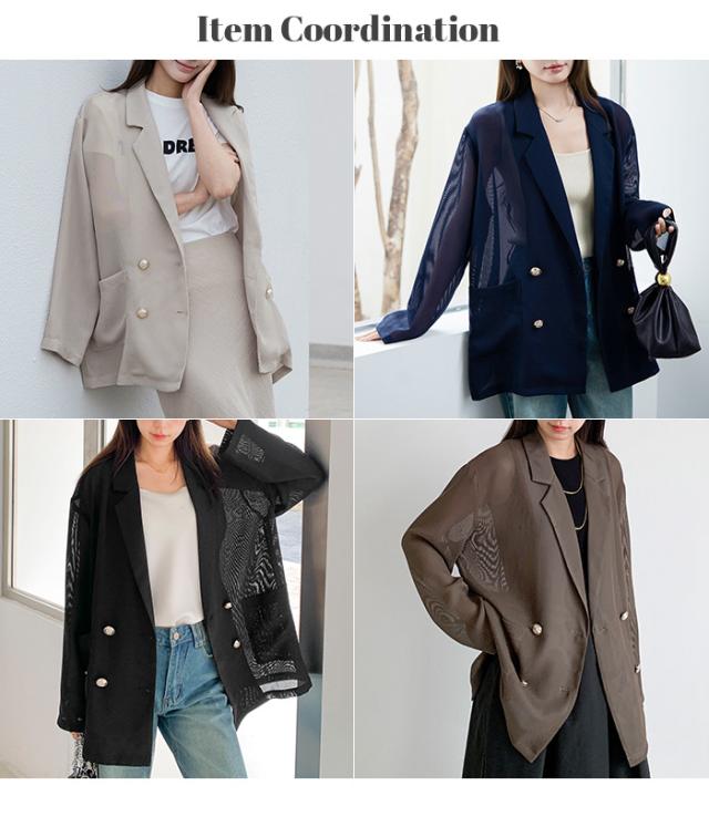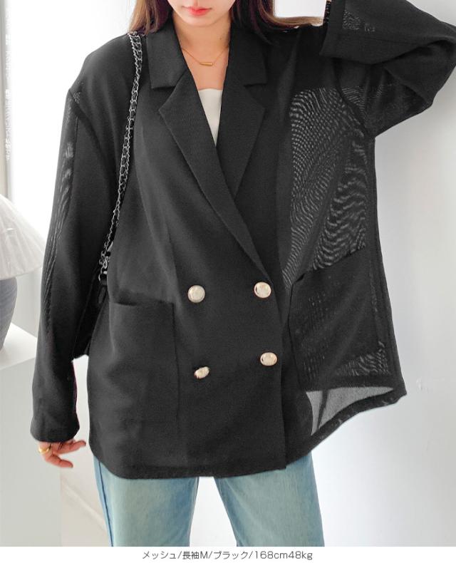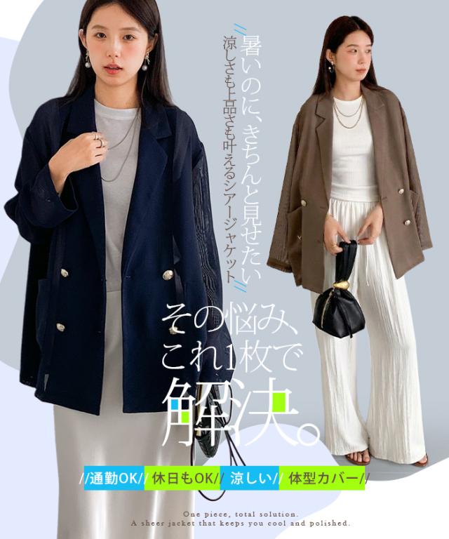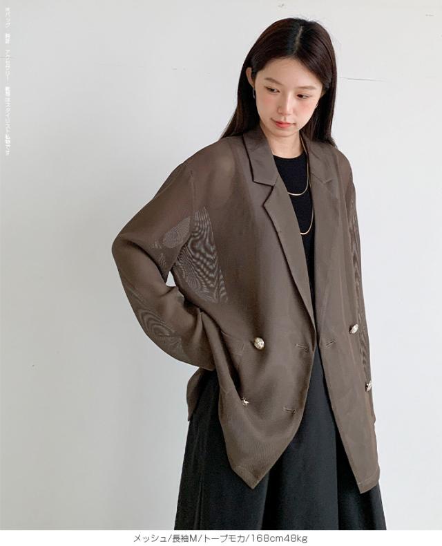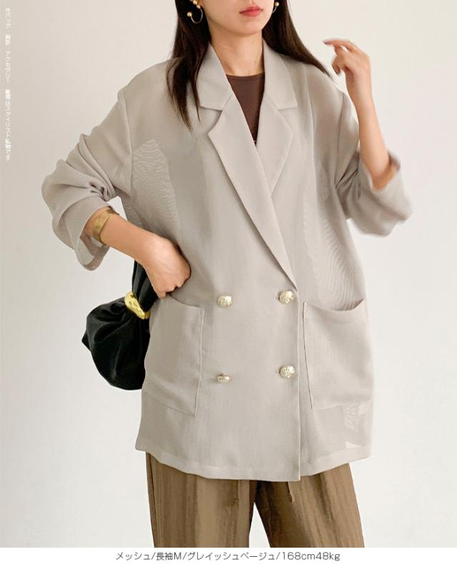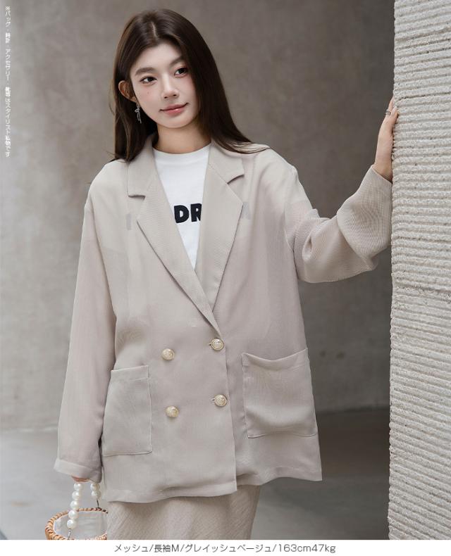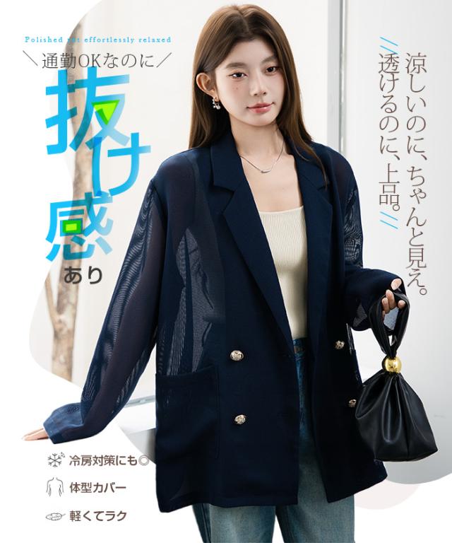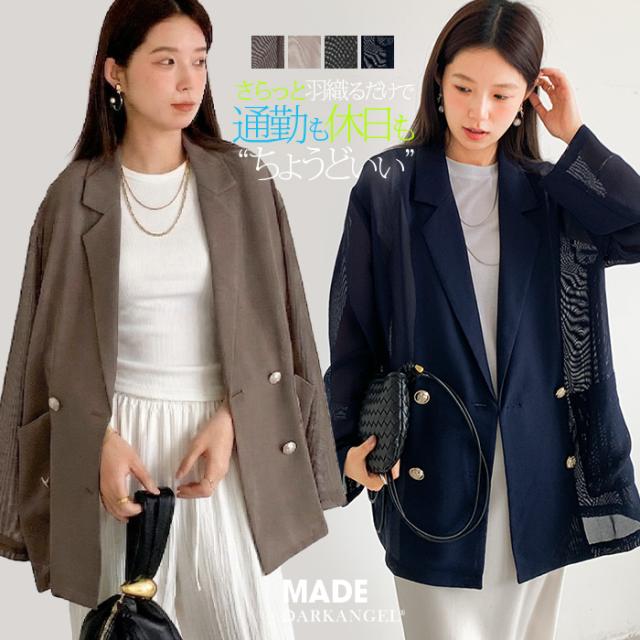 〈2,790円!クーポンで〉シアージャケット レディース テーラード 薄手 オーガンジー ダブルボタン 羽織り オーバーサイズ 透け感 上品 きれいめ 春 夏 通勤 大人カジュアル シャツ感覚 アウター 【シアージャケット】 春新作 ●即納● 母の日 ダークエンジェル