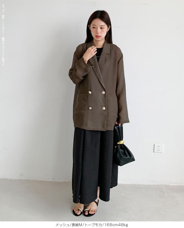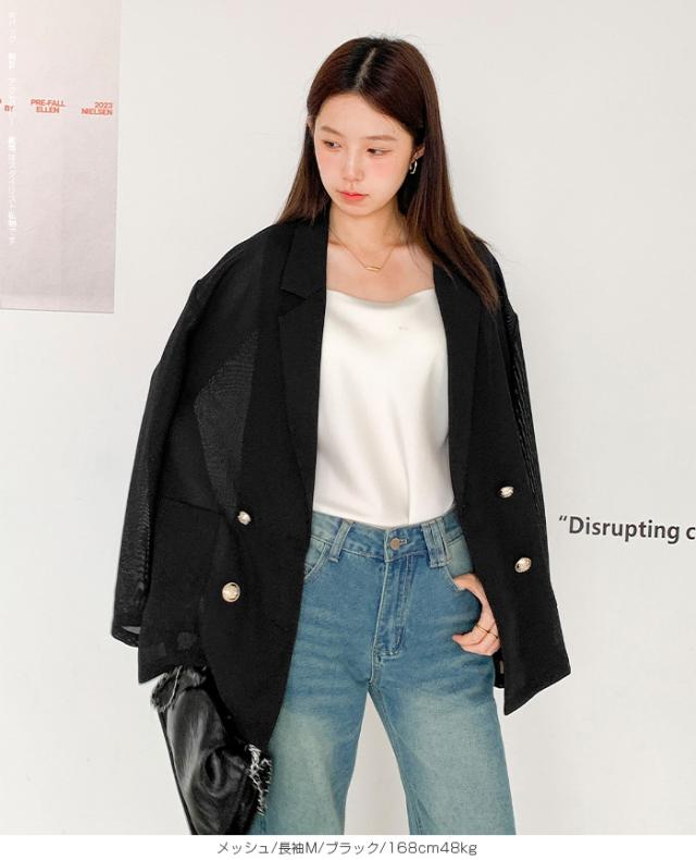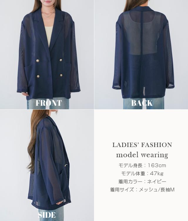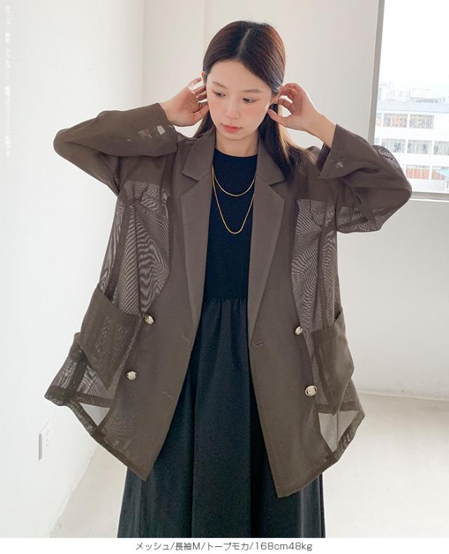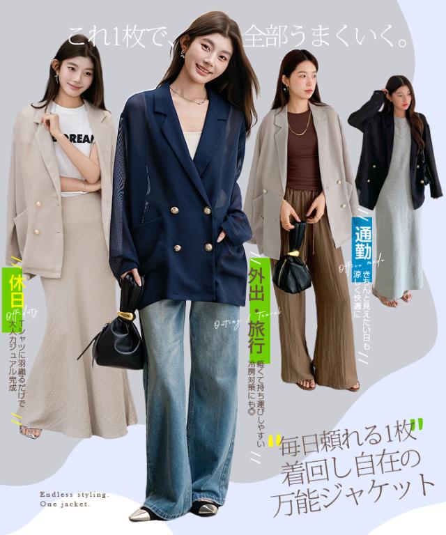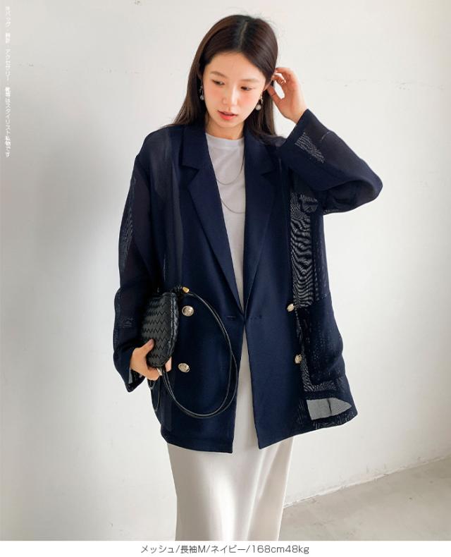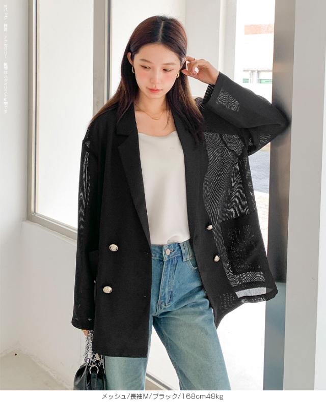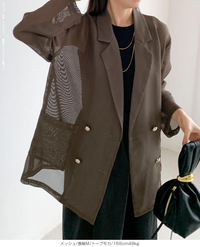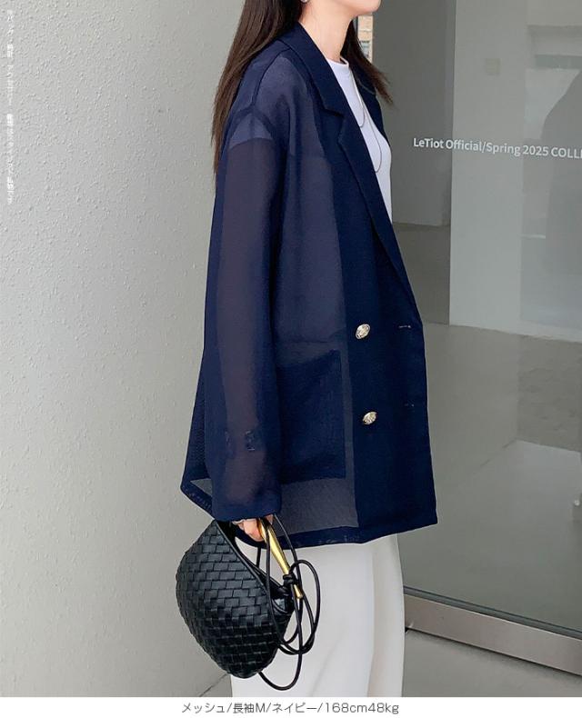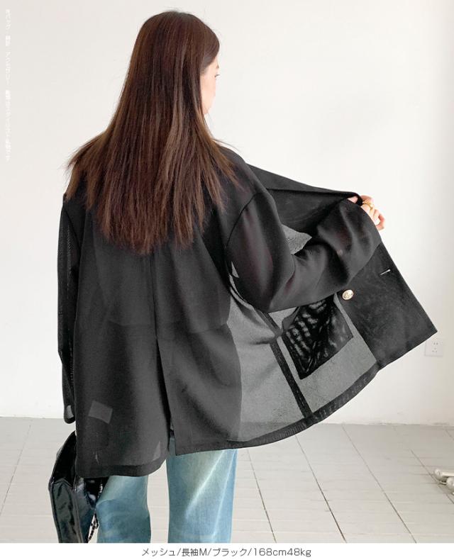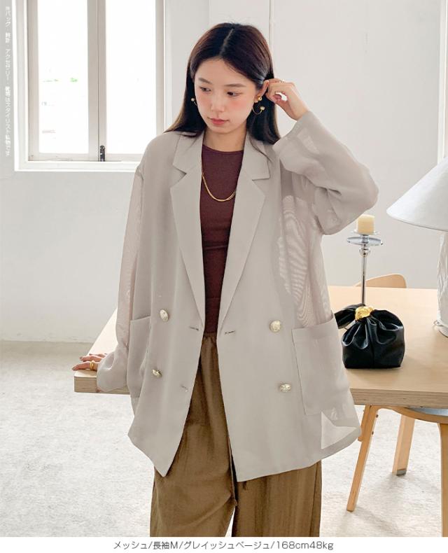〈2,790円!クーポンで〉シアージャケット レディース テーラード 薄手 オーガンジー ダブルボタン 羽織り オーバーサイズ 透け感 上品 きれいめ 春 夏 通勤 大人カジュアル シャツ感覚 アウター 【シアージャケット】 春新作 ●即納● 母の日 ダークエンジェル