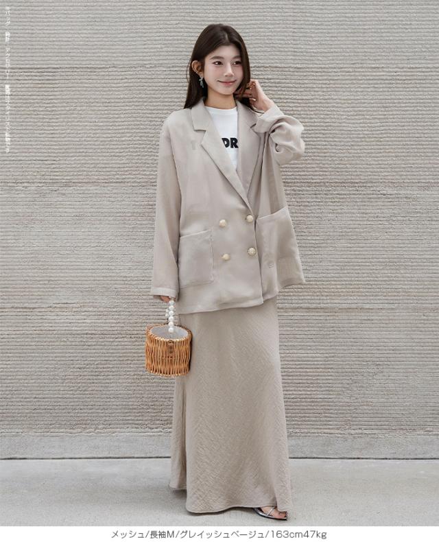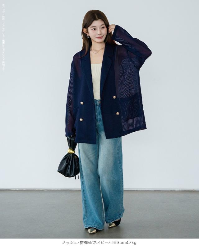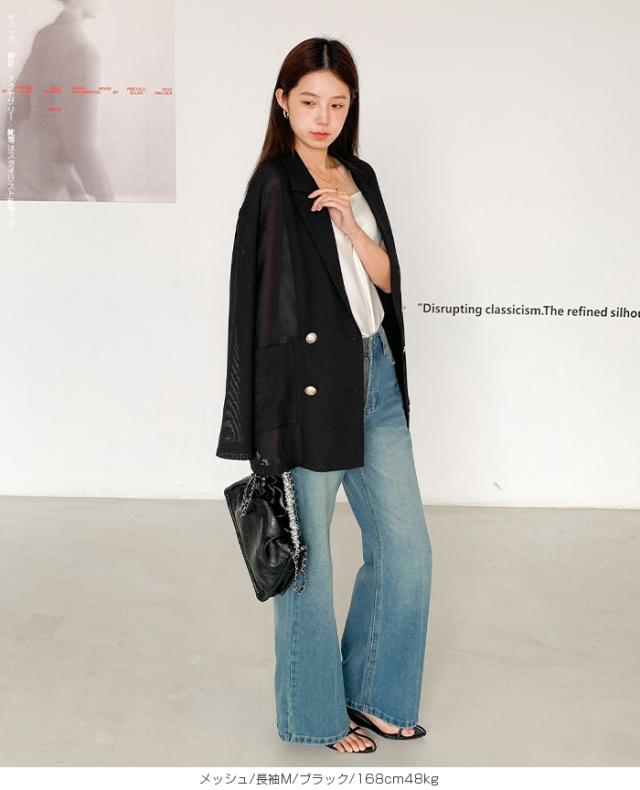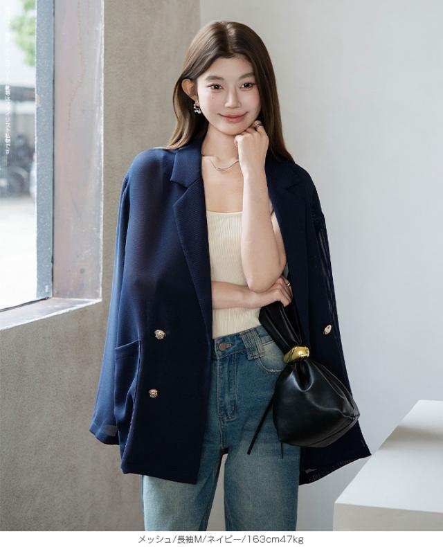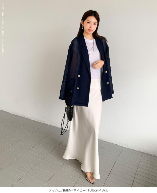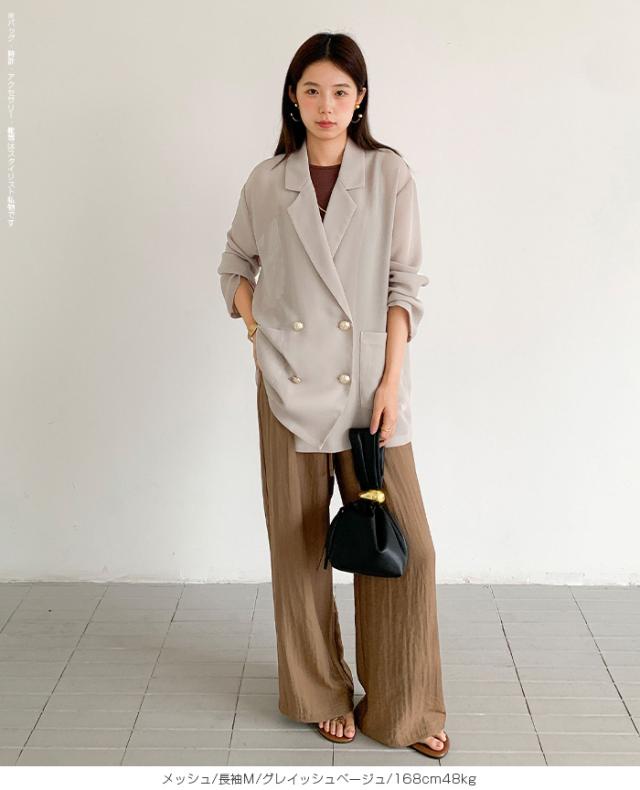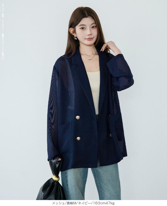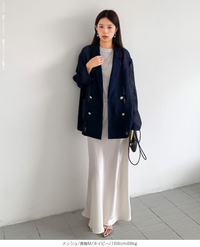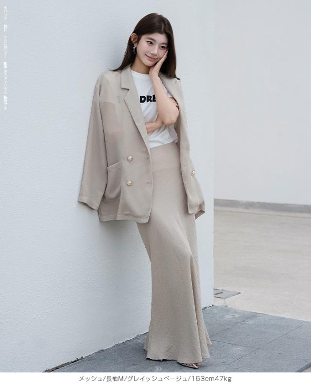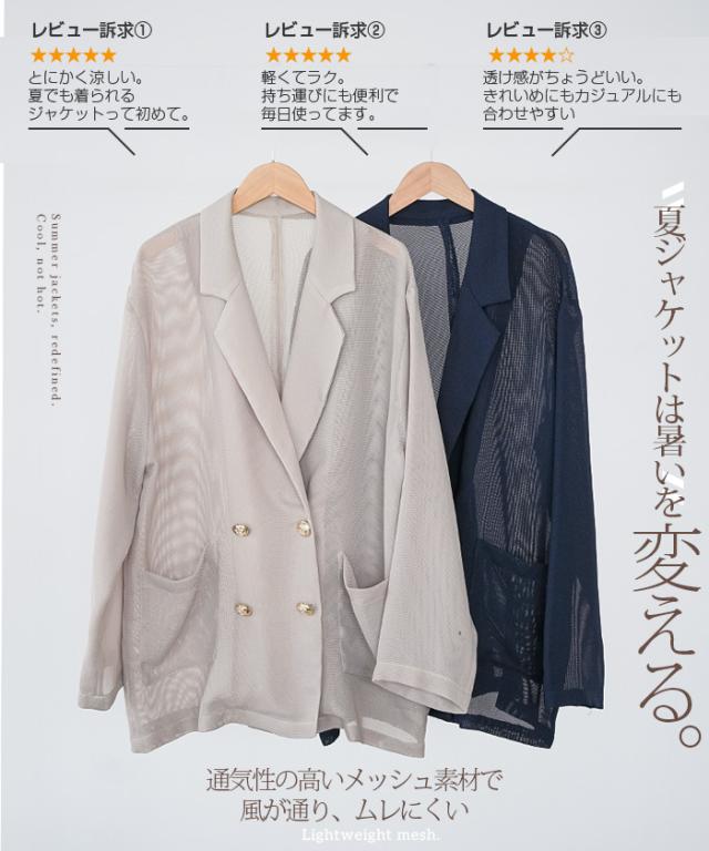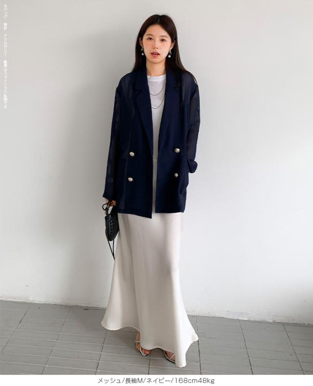 〈2,790円!クーポンで〉シアージャケット レディース テーラード 薄手 オーガンジー ダブルボタン 羽織り オーバーサイズ 透け感 上品 きれいめ 春 夏 通勤 大人カジュアル シャツ感覚 アウター 【シアージャケット】 春新作 ●即納● 母の日 ダークエンジェル