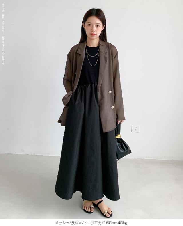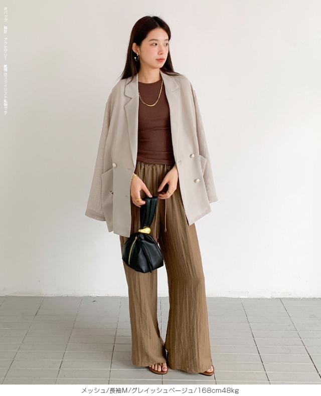 | 「暑いけどラフすぎるのはNG…」 そんな大人女性の悩みに応える、 涼しく着られるシアージャケット。 通気性に優れたメッシュ素材で、 真夏でもさらっと快適。 透け感のある軽やかな素材が、 重たく見えがちなジャケットスタイルに抜け感をプラスし、 羽織るだけで今っぽく仕上がります。 ダブルボタン仕様でカジュアルすぎず、 きちんと見えもキープ。 通勤やオフィスカジュアルはもちろん、 デニムと合わせた休日スタイルにも活躍します。 軽くて持ち運びしやすく、 冷房対策や日よけとしても使える万能さ。 「毎日着たくなる理由がある」大人のための夏ジャケットです。 【素材感・着心地】 ・通気性の高いメッシュ素材でムレにくく快適 ・軽量でストレスフリーな着心地 ・ほんのり透けるシアー感で見た目にも涼しげ ・冷房対策や日焼け対策にも使える実用性 【シルエット・サイズ感】 ・ドロップショルダーで抜け感のあるゆったりシルエット ・ヒップが隠れる丈感で自然に体型カバー ・オーバーすぎない絶妙なバランスで上品見え ・普段サイズで程よくゆるっと着用可能 【着回し&コーデ提案】 ・ワンピースに羽織って通勤コーデに ・Tシャツ×デニムで抜け感カジュアルに ・ナロースカートやスラックスで大人きれいめに ・旅行や出張時の軽アウターとしても活躍 →オンもオフもこれ1枚で対応可能 |