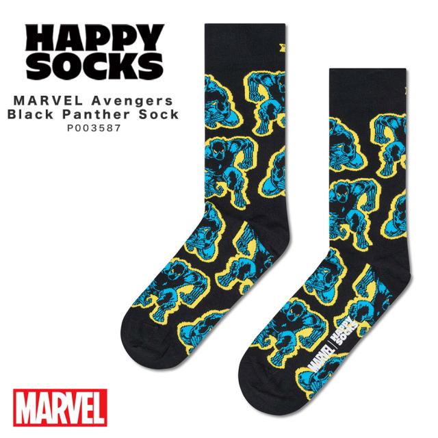 happy socks ハッピーソックス ギフト MARVEL Avengers Black Panther Sock マーベル アベンジャーズ ブラックパンサー P003587 靴下 メンズ レディース おしゃれ ブランド かわいい ビジネス ソックス スニーカー クルー丈 くつ下 カジュアル 総柄 2025 冬 春 春夏