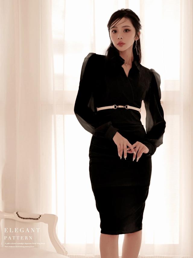 一部予約販売 キャバワンピース DaysPiece 袖付き シフォン袖 長袖 膝丈 ミディ丈 キャバ ワンピース ワンピ キャ