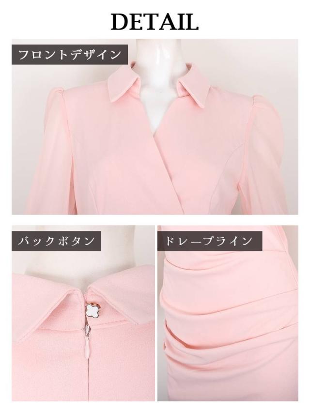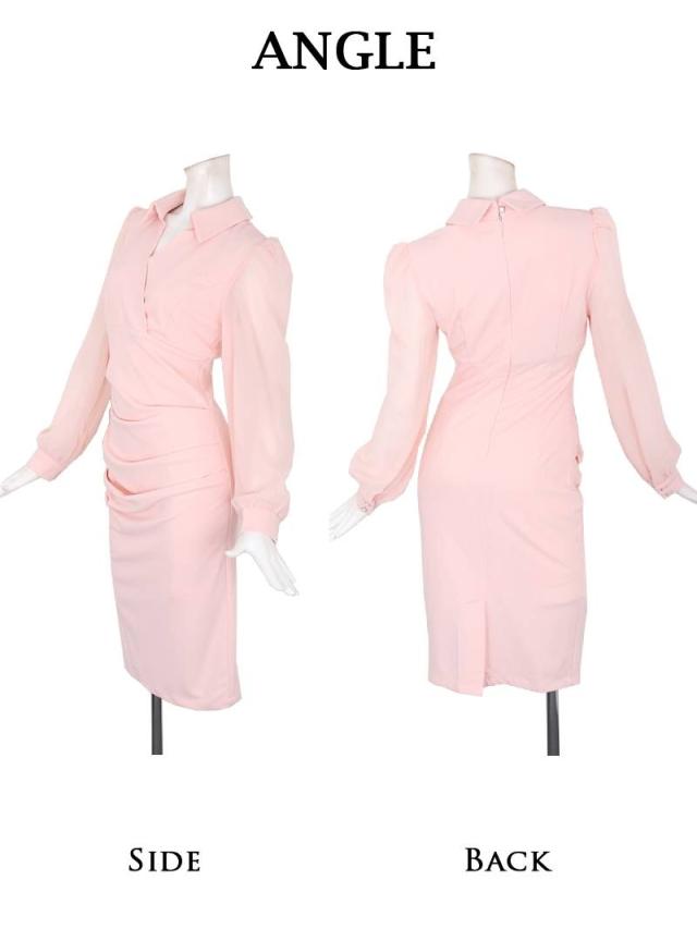 ☆ほんのり肌が透けるシフォン袖が色っぽいキャバワンピースは二の腕もカバー。