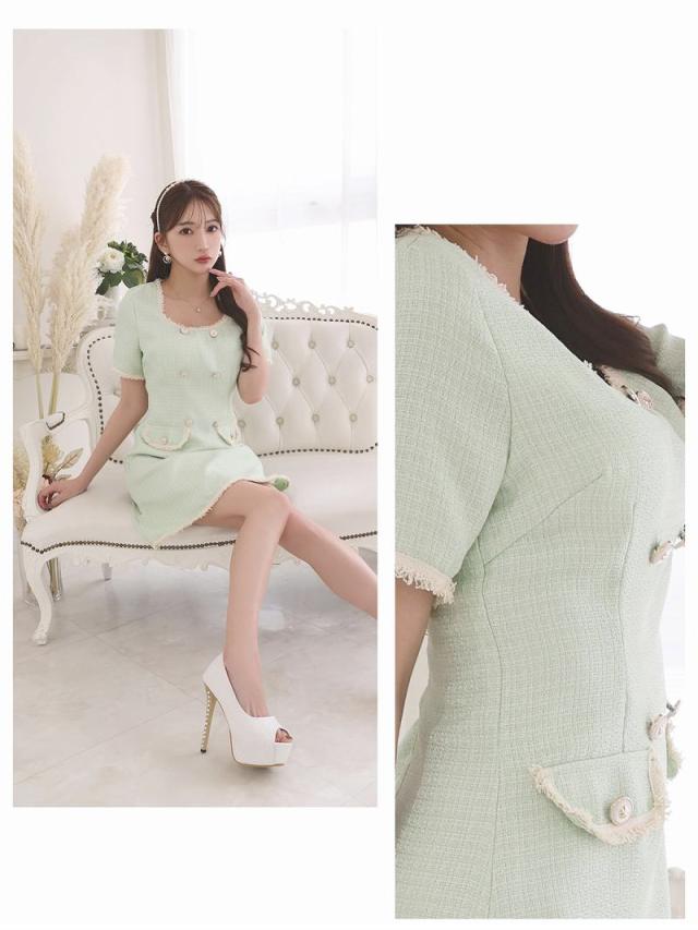 キャバ ドレス キャバドレス ミニドレス ミニ キャバクラドレス パーティードレス セクシー 韓国ドレス Ryuyu ツイード
