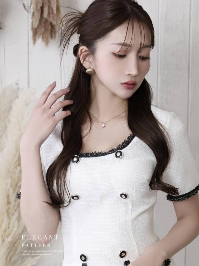 ☆韓国風なデザインがおしゃれに着こなせるキャバクラドレスはフリンジパイピングをあしらいました。