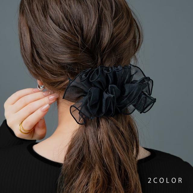ボリューム感あるフリルデザインのバレッタ。 透け感のあるチュール生地を重ねてボリュームを持たせたシルエットが、女性らしく華やかな印象◎束ねただけのヘアスタイルを一気にブラッシュアップしてくれるアイテムです。
