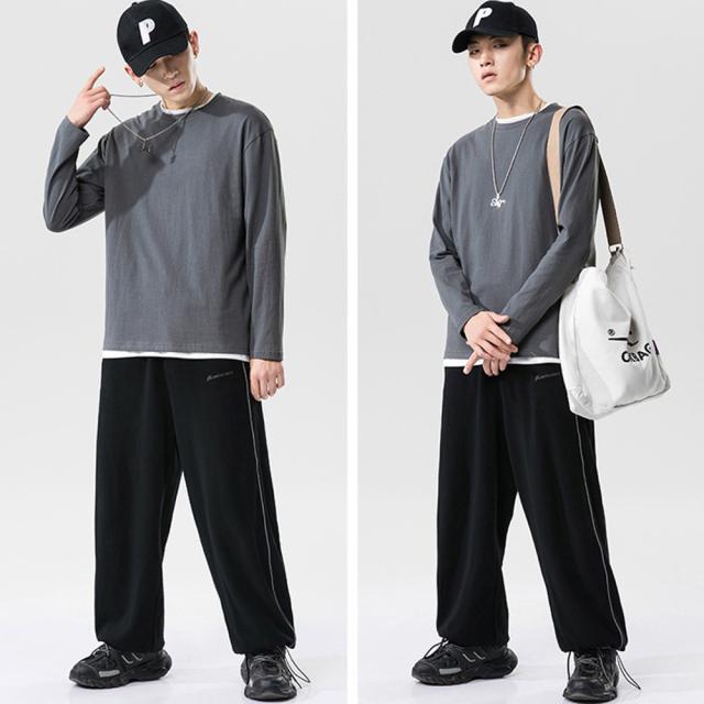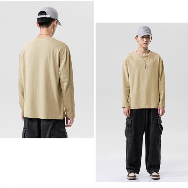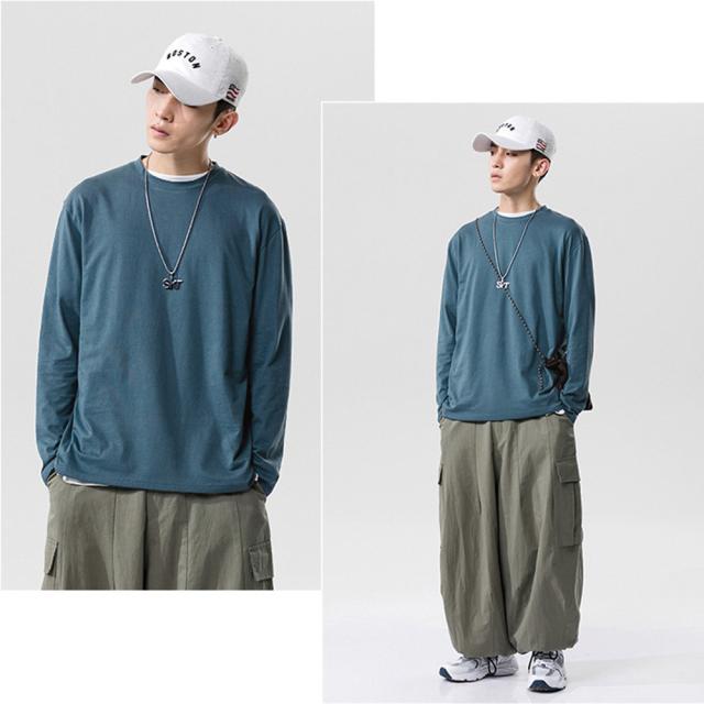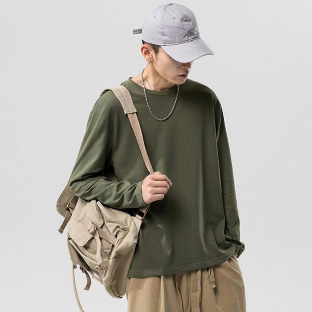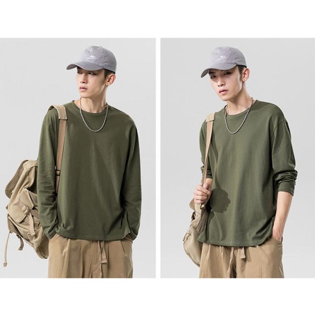 飽きの来ないシンプル無地ロングTシャツ。