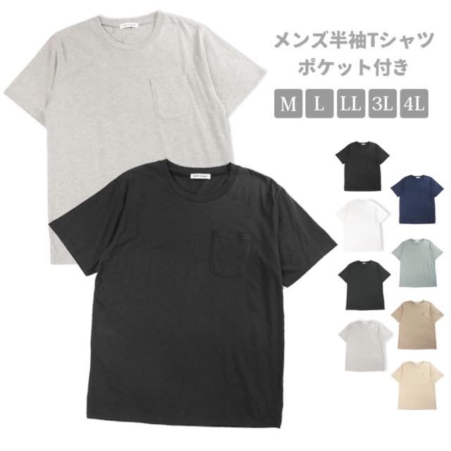 【メール便送料無料】【大きいサイズあり】半袖 Tシャツ メンズ M L LL 3L 4L 全8色 41576 41578A ポケット付き 男性用 紳士用 シンプル 無地 黒 白 紺 緑 茶 ブラック ホワイト チャコール 杢グレー ネイビー ライトグリーン モカ ベージュ 2896