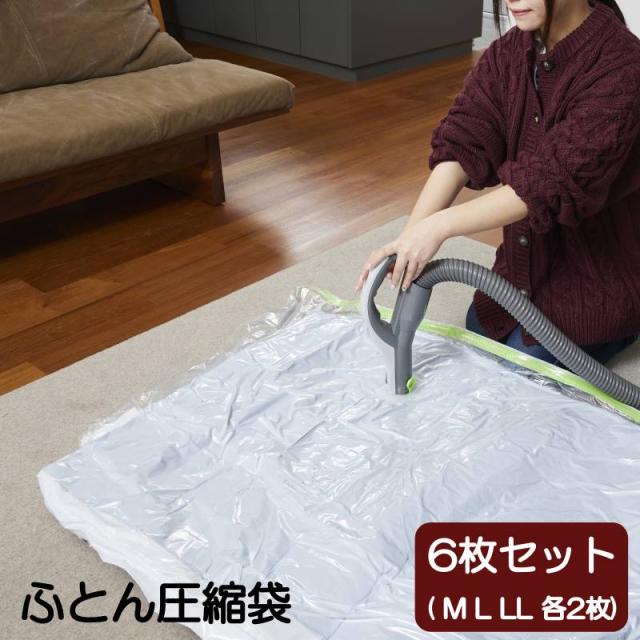 布団圧縮袋 6枚セット Mサイズ2枚 Lサイズ2枚 LLサイズ2枚 ふとん圧縮袋 バルブ式 品質保証の日本製