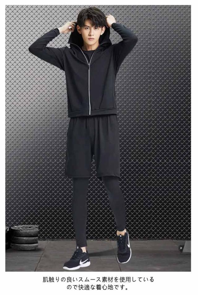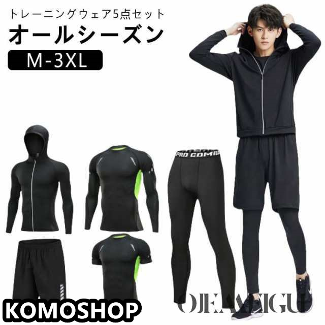 M-3XL トレーニングウェア スポーツウェア 上下 5点セット メンズ ジム 半袖 トップス 長袖 パーカー パンツ 上下セット ランニングウェア フィットネスウェア ヨガウェア ジムウェア ウォーキング ウェア セットアップ