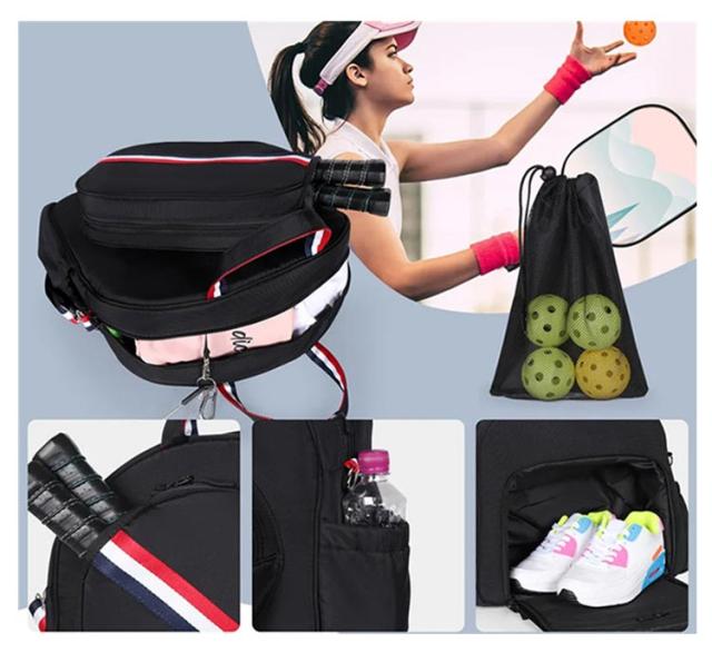 | 便利な大容量と多機能 ラケットバッグ 旅行カバンとしても使える大容量な収納力! 拡張シューズポケット付き テニスラケットも2?3本まで収納可能で、家族や友達でテニスを楽しむにはぴったりです | |