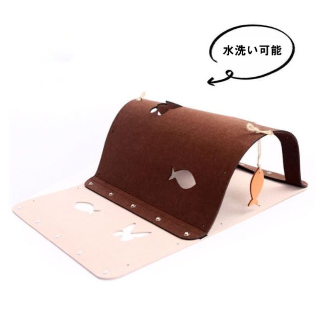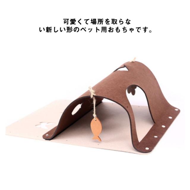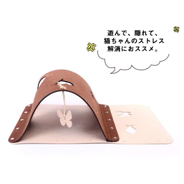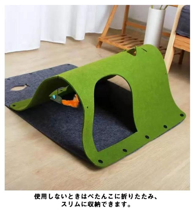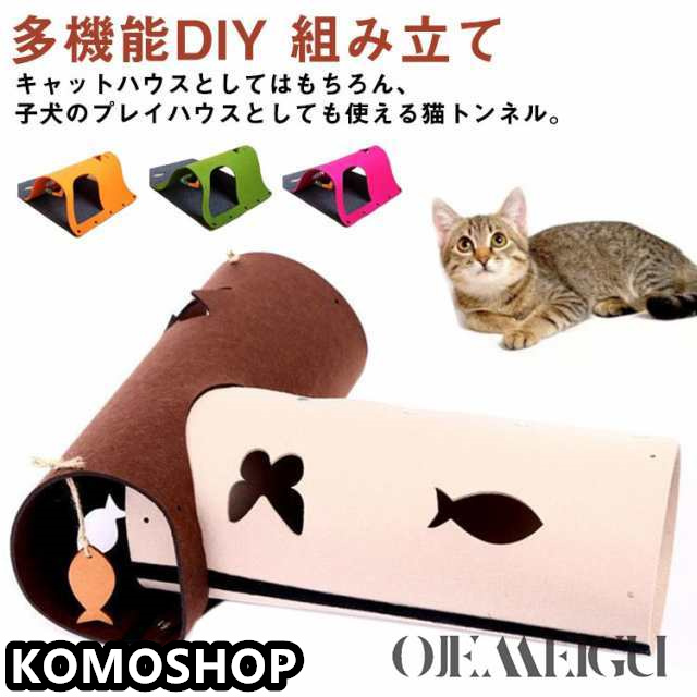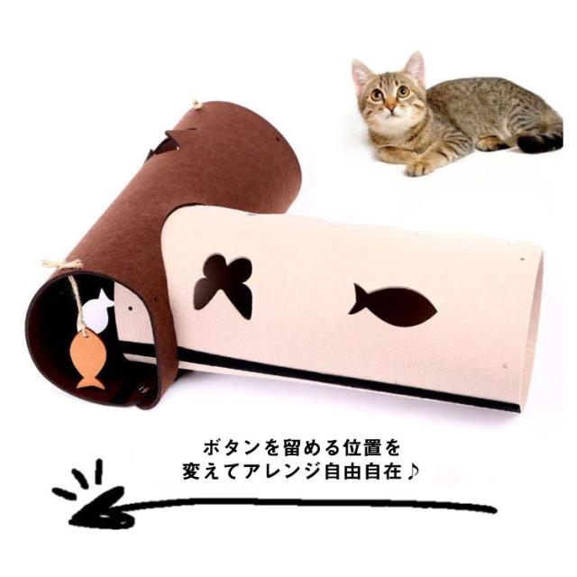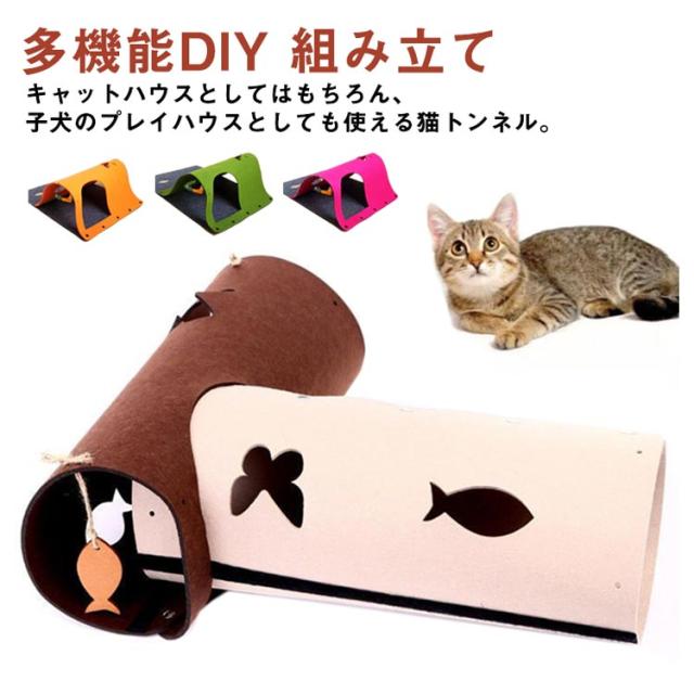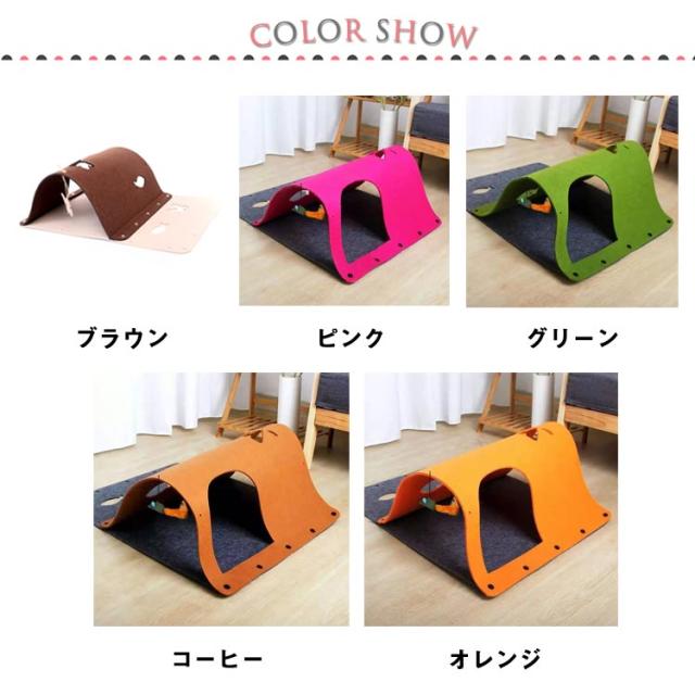 | キャットハウスとしてはもちろん、子犬のプレイハウスとしても使える猫トンネル。 ボタンを留める位置を変えてアレンジ自由自在? 遊んで、隠れて、猫ちゃんのストレス解消におススメ。 可愛くて場所を取らない新しい形のペット用おもちゃです。 使用しないときはぺたんこに折りたたみ、スリムに収納できます。 やわらかいフェルト素材で誤って体を傷つける心配もありません。 | |