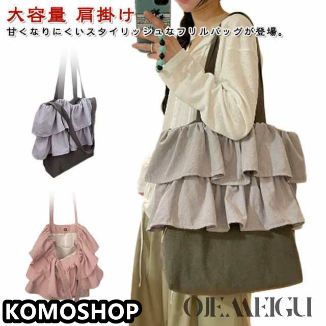 トートバッグ フリル 肩掛け 鞄 フリルバッグ バック フリル カバン 旅行 ティアード レディーストート 大容量 女の子 大きめ マザーズバッグ トート 大きめ 買い物 通勤 通学 フリル 修学旅行 バッグ パープル