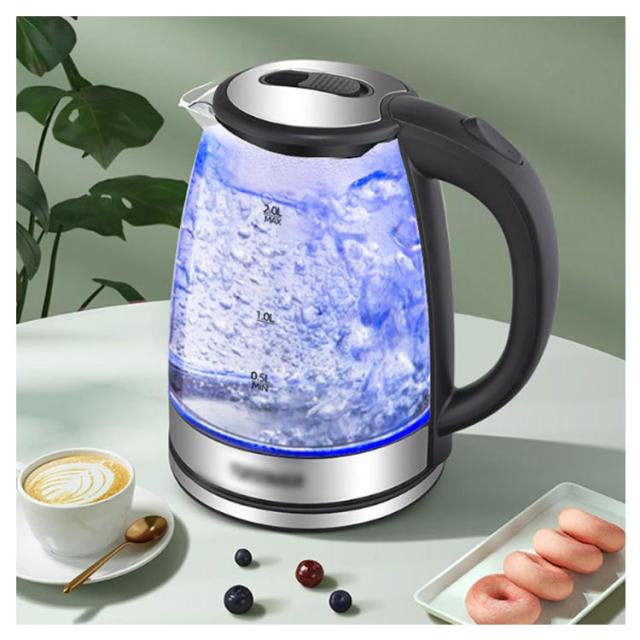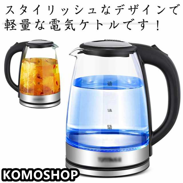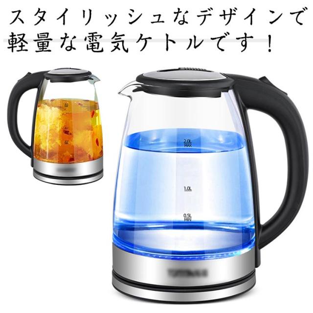 耐熱200℃ 電気ケトル ガラス ケトル おしゃれ ガラス製 耐熱強化ガラス 2L ポット 電気ポット 洗える 透明 ワンタッチ キッチン家電 軽量 お湯 コーヒー 紅茶 お茶 結婚祝い ギフト プレゼント 新生活 送料無料