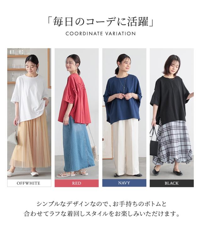 カットソー レディース トップス 半袖 五分袖 Tシャツ 綿100% フリル 二の腕カバー ゆったり プルオーバー 春 夏 【TP】 クルーネック n'OrLABEL ノア—ルレーベル 大人女子 大人可愛い お洒落可愛い 大人カジュアル ベーシック ニュアンス ラフ エフォートレス オフィスカジュアル 上品 きれいめ ナチュラル ホワイト 白 オフホワイト ミディ丈 ミドル丈 チュニック丈 ドロップショルダー ビッグシルエット オーバーサイズ スリット バックシャン 無地 コットン100% レイヤード 重ね着 おうちで洗える カジュアル シンプル キレカジ フェミニン ガーリー ゆる Sサイズ Mサイズ Lサイズ LLサイズ 3Lサイズ XLサイズ フリーサイズ ぽっちゃり 体型カバー 大きいサイズ プラスサイズ 10代 20代 30代 40代 50代 60代 女子会 オフィス 通勤 通学 お買い物 お出掛け 旅行 リゾート レジャー アウトドア おしゃれ お洒落 トレンド 流行 osharewalker オシャレウォーカー おしゃれうぉーかー レッド 赤 ネイビー 紺 ブラック 黒[ID]12tn0ha
