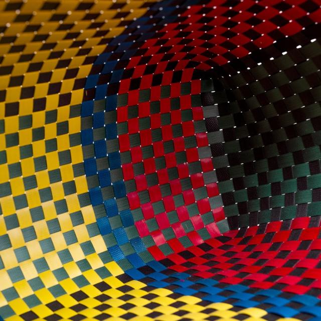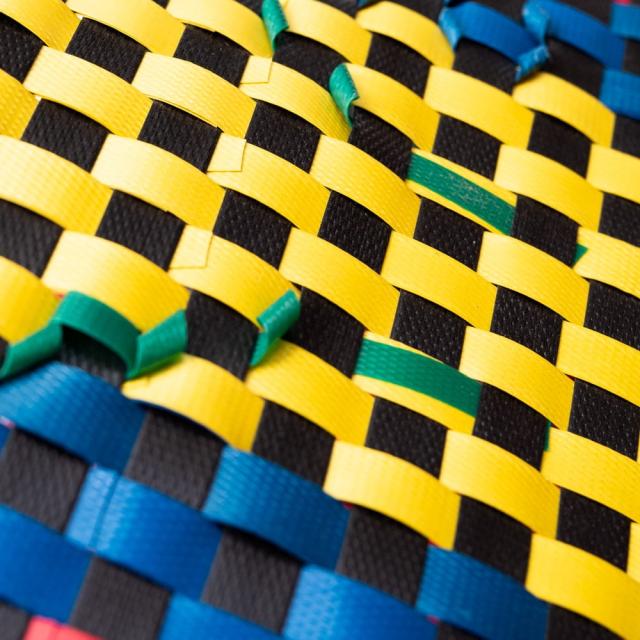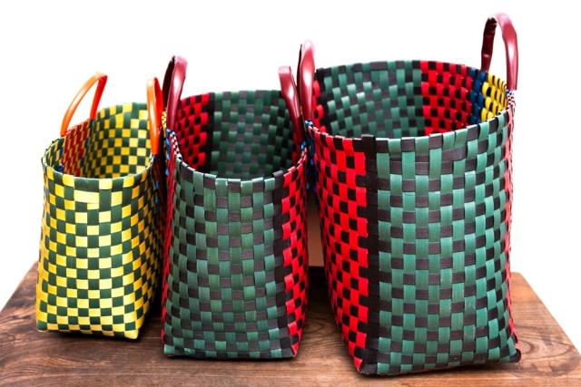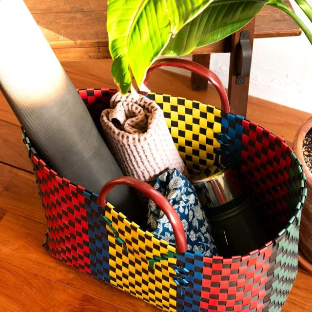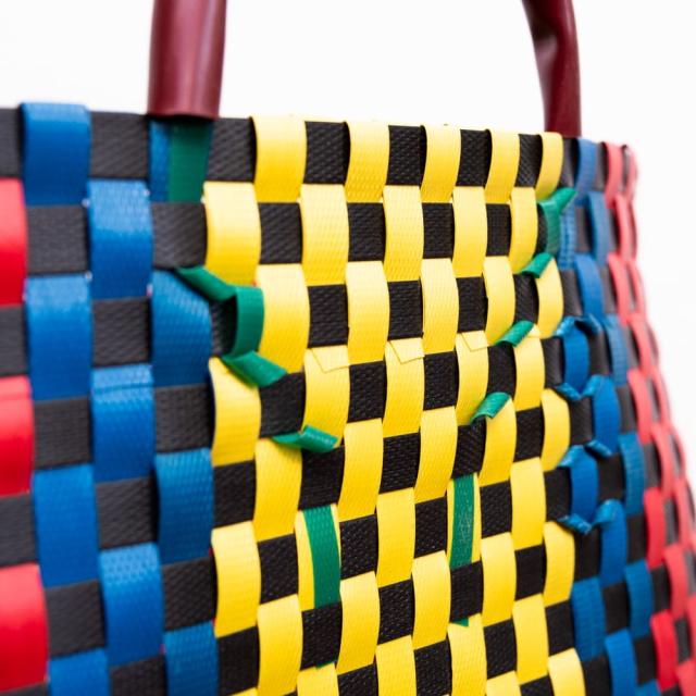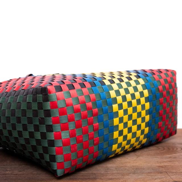 ベトナムから届いた梱包材の結束バンド(PPバンド)で編まれたプラかごバッグです。梱包材なだけあってしっかり丈夫!アジアならではの原色カラフルな色合いも目を引きます。