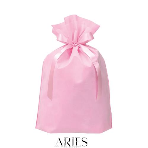 ピンクの無地の無地のリボン付巾着バッグです。ベースのピンクの不織布に薄手の白の不織布を重ねることにより、シンプルながら上品で高級感のあるギフトバッグに仕上げました。 リボンを結ぶだけでギフトラッピングが簡単に完成するので、通年用ギフトにはもちろん、忙しいイベントシーズンにもおすすめ。ギフトタグを添えるとクリスマス、母の日、父の日などイベント用ギフトとしても活躍するギフトバッグです。 カラー・サイズバリエーションも豊富にご用意、お店や商品のテイストに合わせてお選びいただけます。