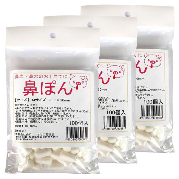 鼻ぽん Mサイズ 9mm×20mm 100個入×3個セット メール便送料無料