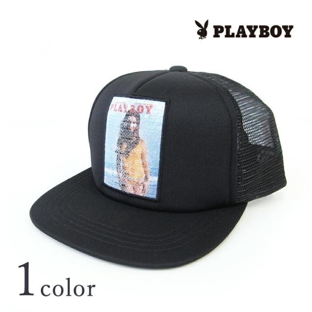 プレイボーイ PLAYBOY スパンコール メッシュ キャップ DS399 ブラック 黒 平つば フラットバイザー 帽子 カジュアル プレゼント ギフト