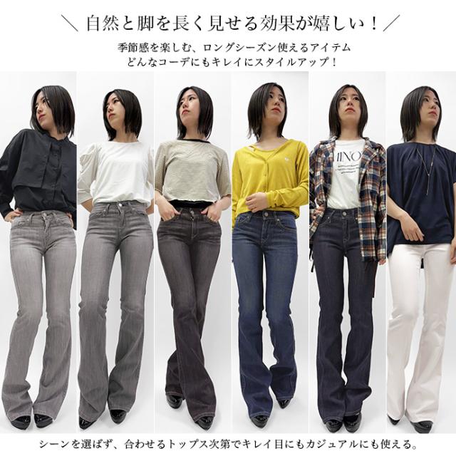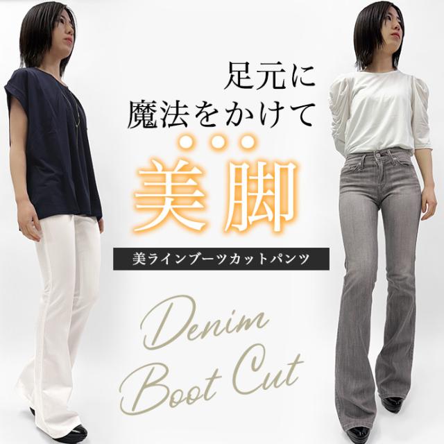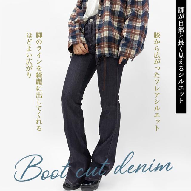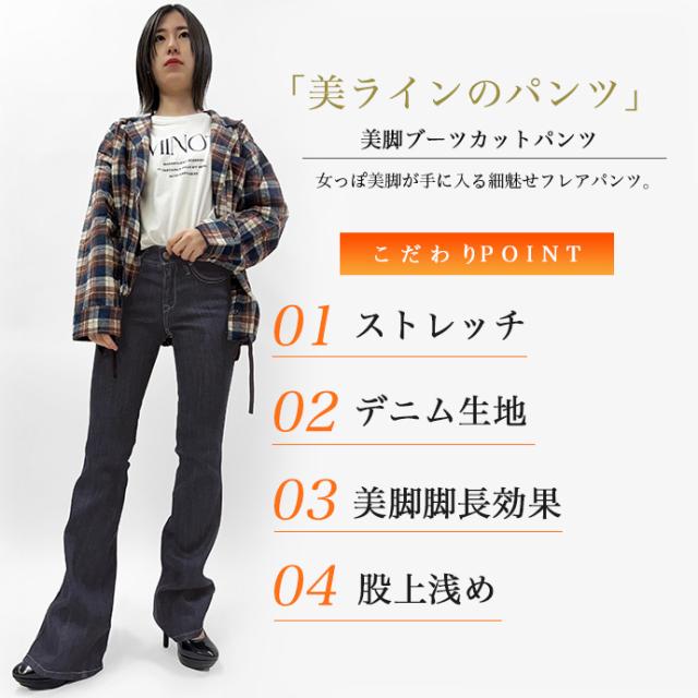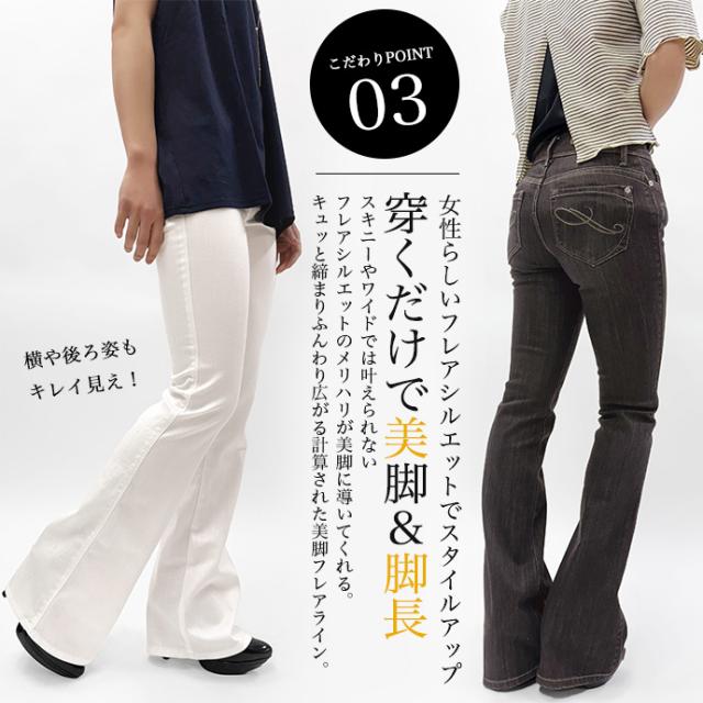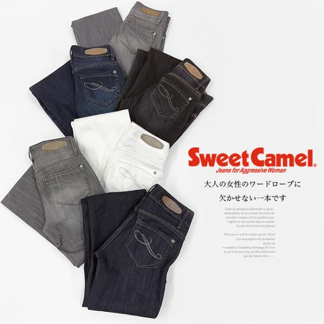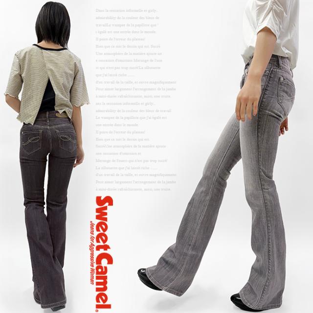 デニム パンツ ジーパン フレアパンツ ブーツカット ボトムス 細身 股上浅め 小さいサイズ 美脚 脚長 Sweet Camel スイートキャメル レディース 送料無料