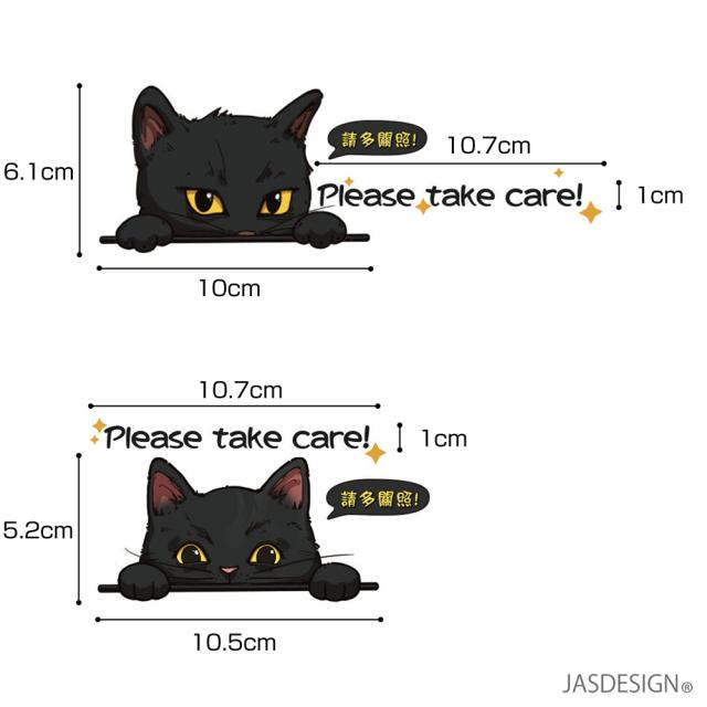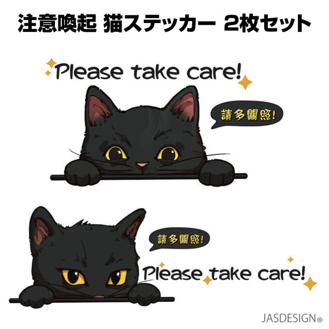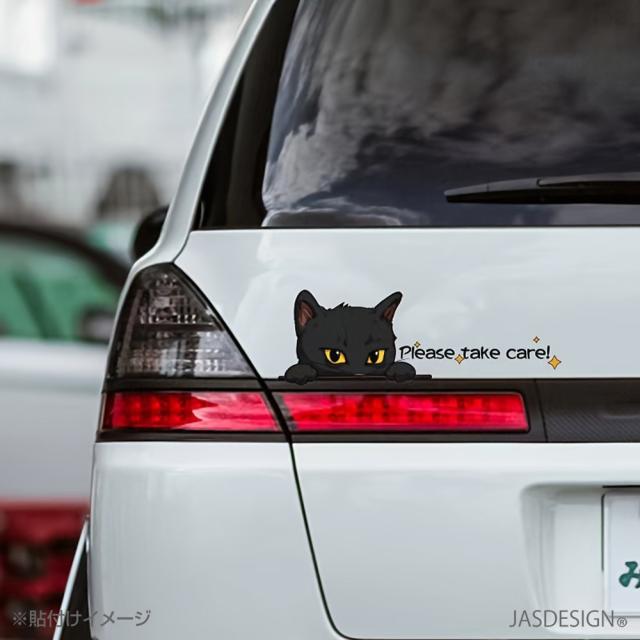 猫 ステッカー 車 追突注意 ネコ バイク ヘルメット 黒猫 黒ねこ くろねこ シール 壁 ウォール スマホ PC かわいい おもしろ おしゃれ 防水 シール カッティングステッカー デカール ブラック 2枚セット JM-386