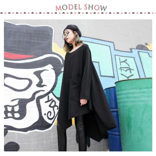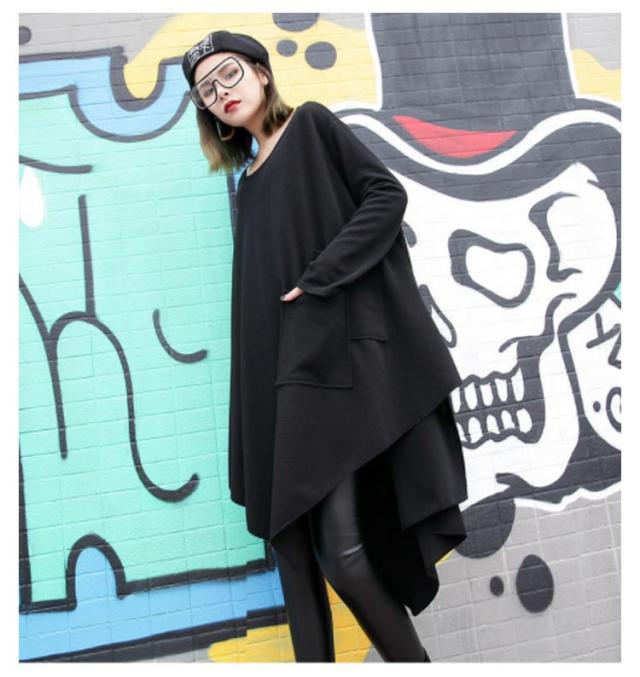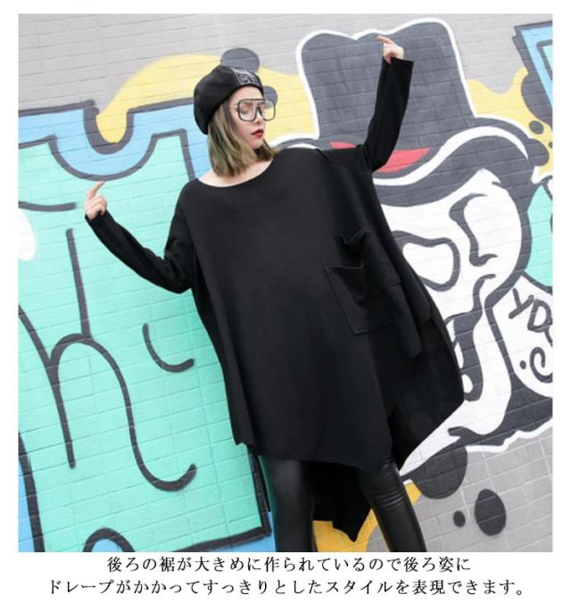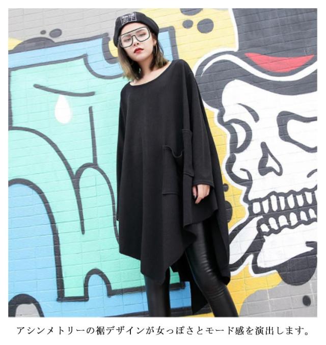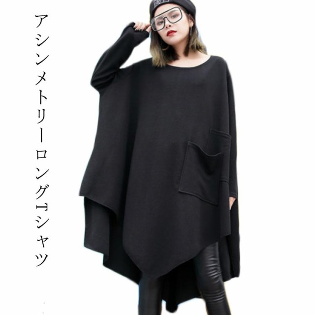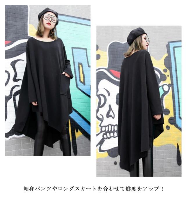 アシンメトリー ロング Tシャツ レディース 長袖 チュニック 春夏 トップス プルオーバー カットソー Tシャツワンピ ラウンドネック ゆるT ビッグシルエット 変形Tシャツ 大きいサイズ 無地 ゆったり 送料無料 カジュアル 大人 可愛い ストリート系 モード系 夏服 春服