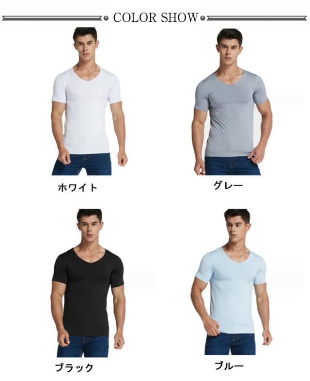 Vネック インナー インナー メンズ 部屋着 カットソー tシャツ 吸水速乾 半袖Tシャツ 全6色 実用的 スポーツウェア ゴルフ インナーウェア 肌着 春夏 大きいサイズ 接触冷感 無地