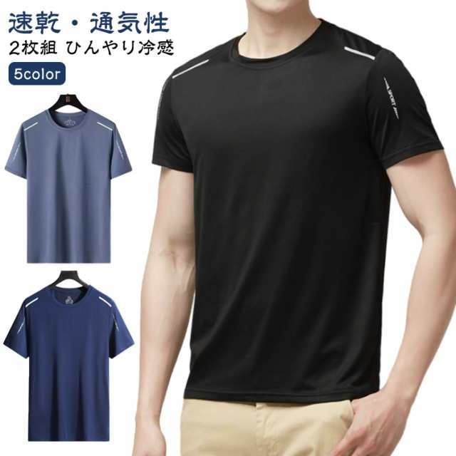 吸汗 ゴルフ Tシャツ 半袖tシャツ 【2枚セット】メンズ 無地 ストレッチ 【2枚セット】メンズ スポーツ 接触冷感 ティーシャツ クルーネック 速乾 涼しい メッシュ UVカット トップス ドライ 通気性 夏用 インナー 作業服 作業着 軽量 シンプル 大きいサイズ