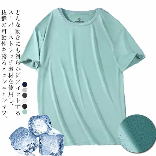 半袖 tシャツ 3枚セット メンズ インナー ドライ メッシュ tシャツ スーパー ストレッチ 接触冷感 涼しい 吸水 速乾 通気性 細身 スリム フィット クルーネック スポーツ インナー ジム ゴルフ ウェア アンダーシャツ