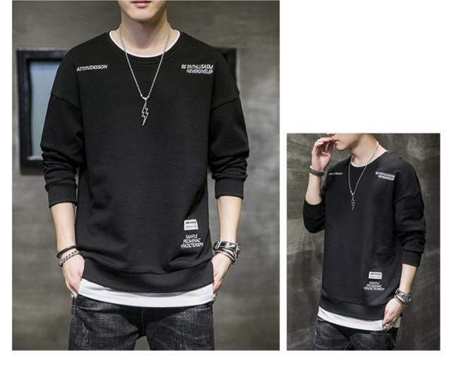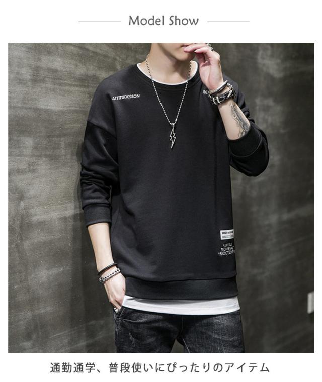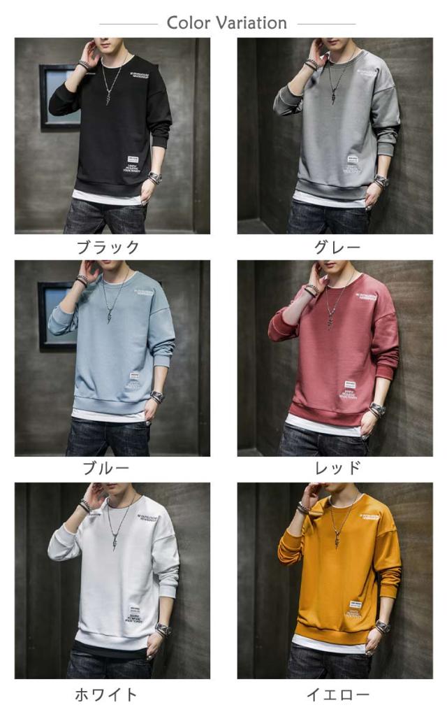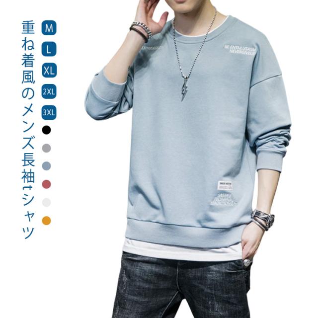 トレーナー 長袖tシャツ メンズ トレーナー トップス レイヤード tシャツ 秋服 ゆったり カットソー 重ね着風 長袖 ラウンドネック 春服 カジュアル 部屋着 通勤 通学 無地 おしゃれ