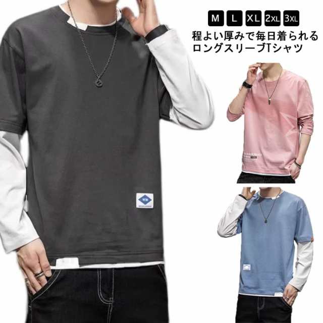 ロングTシャツ メンズ メンズ 長袖tシャツ Tシャツ 長袖 長そで ロンT ロングTシャツ Tシャツ Tシャツ シンプルTシャツ ロンT カットソー Uネック クルーネック ロングtシャツ トップス スリム アメカジ 秋 冬 春