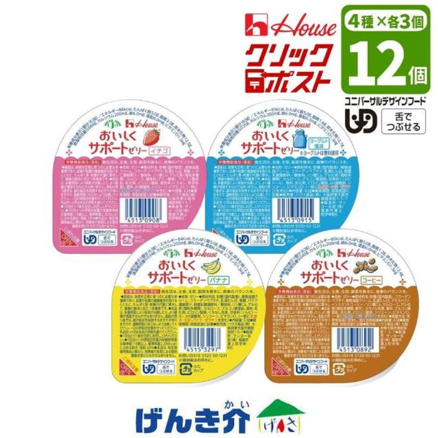 【クリックポスト便 送料無料】おいしくサポートゼリー げんき介オリジナル 12個セット(4種×各3個) ハウスギャバン 区分3(舌でつぶせる)
