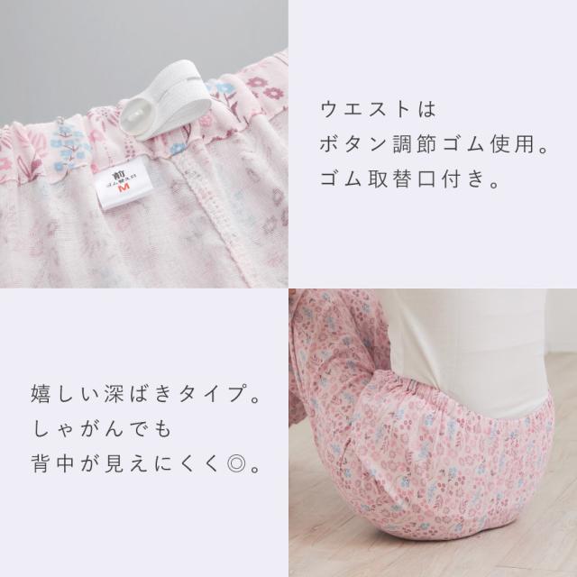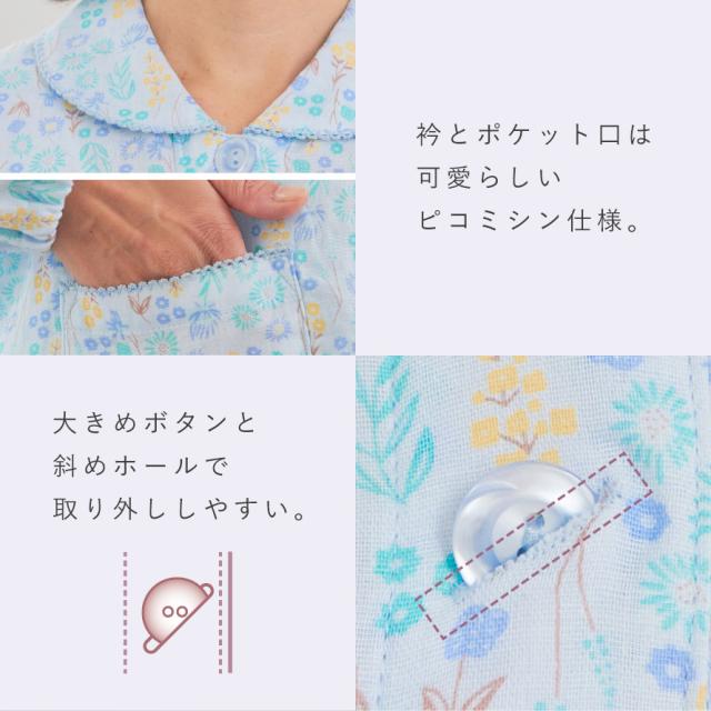 ガーゼ パジャマ 二重 綿100% 母の日 ギフト 長袖 レディース ダブルガーゼ 敏感肌 小さいサイズ 前開き シニア 高齢者 花柄 背が低い 低身長 入院用 春 夏 秋 M L 母 60代 70代 80代 綿やわらかダブルガーゼ小柄さんパジャマ ズボン裾 ゴム ポケット付き 母の日 ギフト