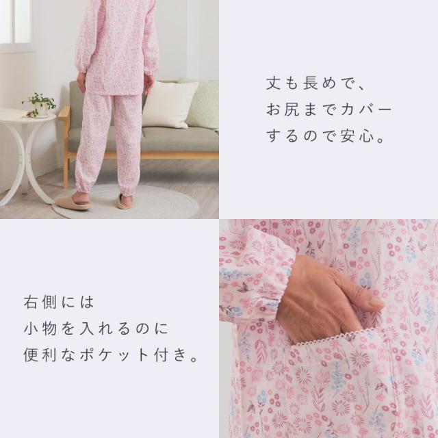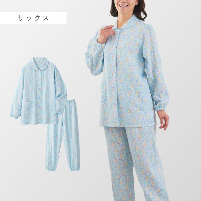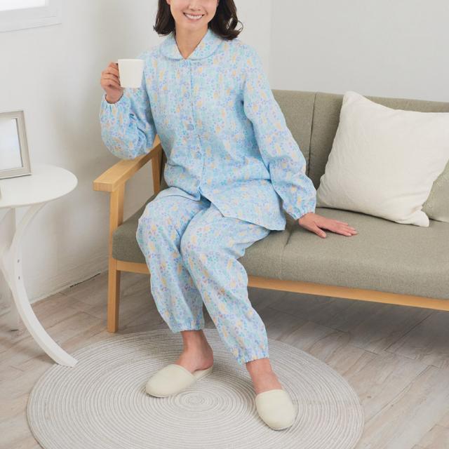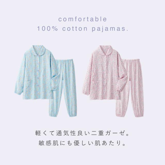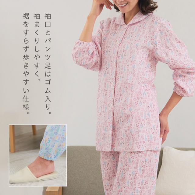 パジャマ レディース 小柄 シニア,パジャマ 綿100 レディース,プチサイズ パジャマ,パジャマ,ルームウェア,ホームウェア,部屋着,ナイトウェア,寝間着,ねまき,寝巻き,長袖,前開き,上下,大きめボタン,着脱簡単,ショール襟,ショール衿,袖ゴム,裾ゴム,足首,ゴム,花柄,綿100%,コットン100%,綿,コットン,100,肌に優しい,敏感肌,二重ガーゼ,ダブルガーゼ,ガーゼ,小柄,身長,低い,低,身長,低身長,小さいサイズ,プチサイズ,丈,短め,通気性,風通し,風通しが良い,ゴム交換可能,春,夏,春夏,秋,冬,秋冬,オールシーズン,大人,レディース,女性,おしゃれ,お洒落,オシャレ,かわいい,可愛い,フェミニン,上品,きれいめ,エレガント,シニア,高齢者,お年寄り,ピンク,サックス,ブルー,青,M,L,LL,大きいサイズ,ゆったり,大きめ,