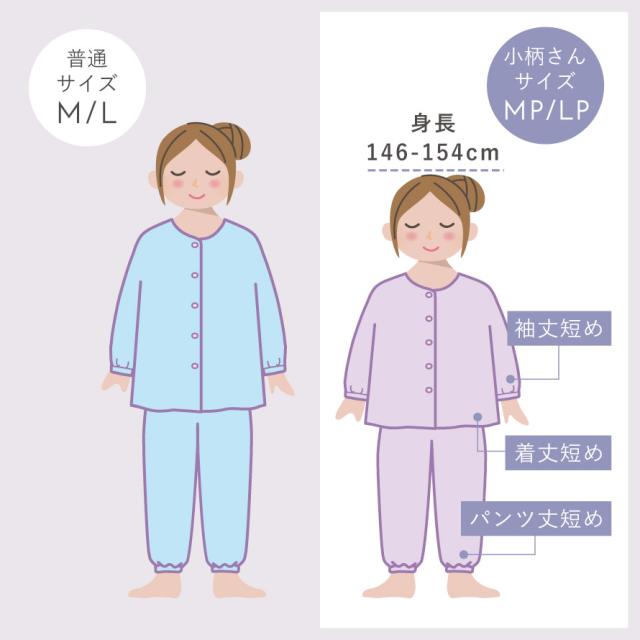 そんな思いから選びたいのが、身長146cmからの綿100%の二重ガーゼパジャマ。身幅はそのままで、丈・袖丈・パンツ丈は短めに設計。「普通のパジャマだと丈が長い・・・」という低身長の方のお悩みを解消してくれるパジャマです。