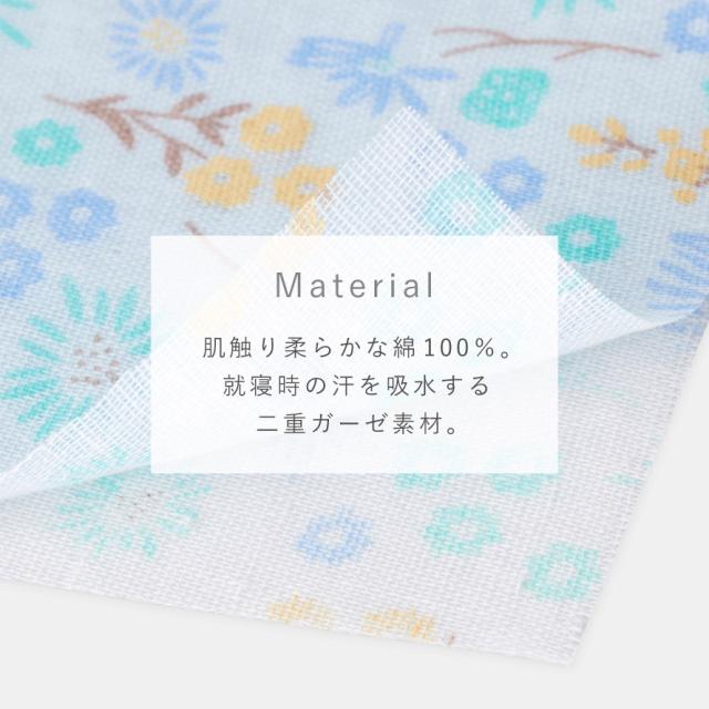 肌にやさしく、汗を吸ってくれるガーゼ素材は、通気性・吸水性にすぐれ、寝ている間も快適。柔らかくて優しい肌触りで、敏感肌の方にも安心して着ていただけます。化繊に比べてかゆみやかぶれのリスクも少ないです。