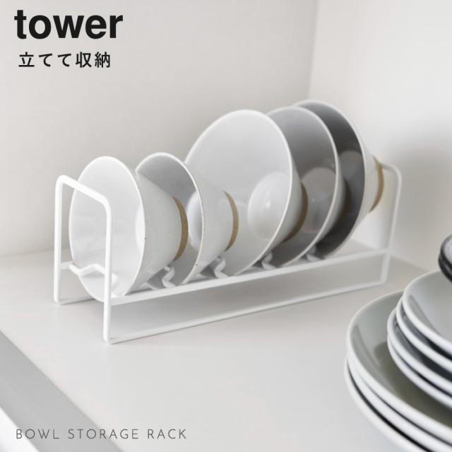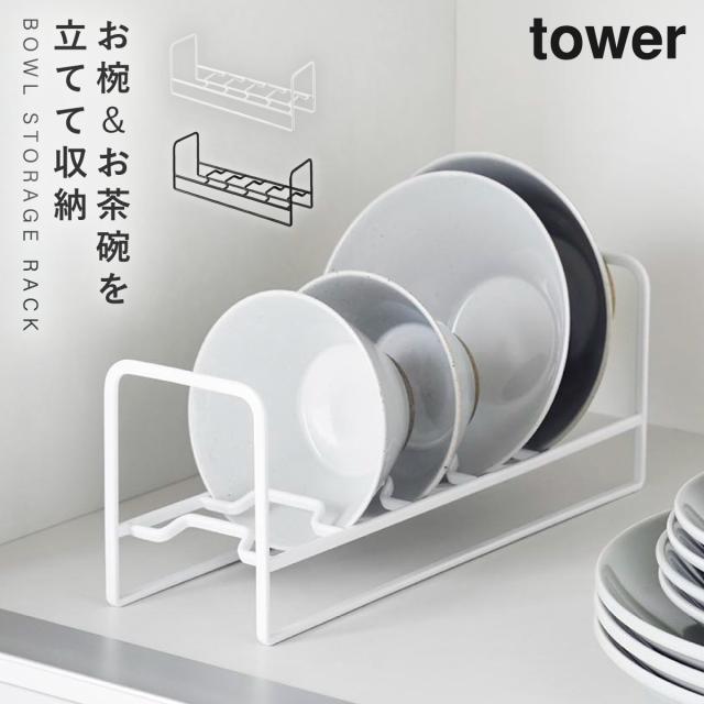 お椀&お茶碗収納ラック タワー 山崎実業 tower タワー 食器 ラック ディッシュラック スタンド おしゃれ モノトーン ホワイト ブラック 1397 1398