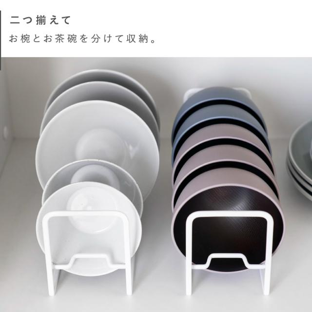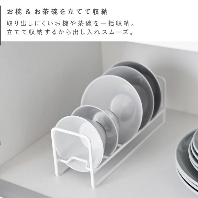 お椀やお茶碗を立てて収納できるラック。スリムなので横幅を取らずに食器棚の奥まで使えます。