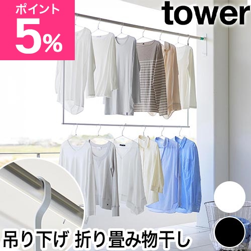 山崎実業 折り畳み伸縮物干し2段ハンガー タワー 4903208012911 4903208012928 物干しラック 物干し竿 部屋干し 物干し台 洗濯物干し 屋外 吊り下げ 室内 ベランダ 折りたたみ 伸縮 浴室用 tower yamazaki タワーシリーズ