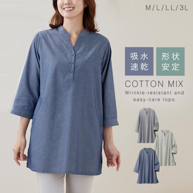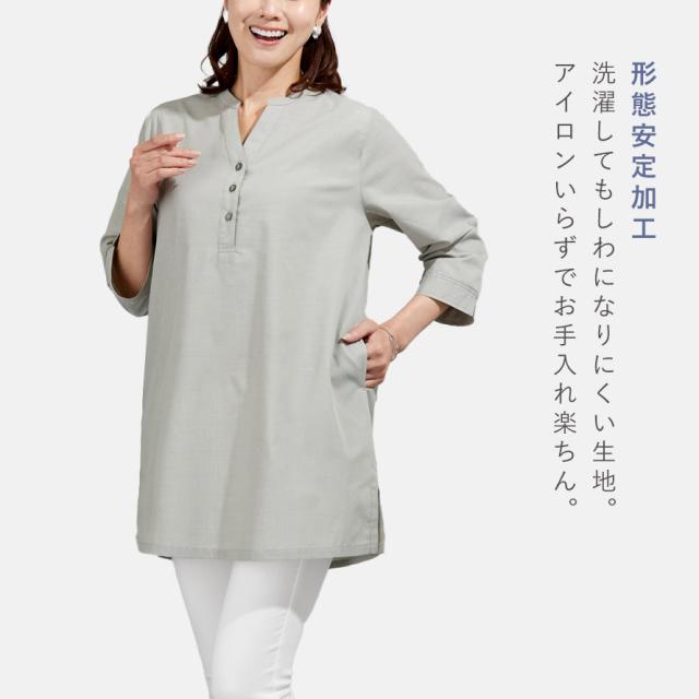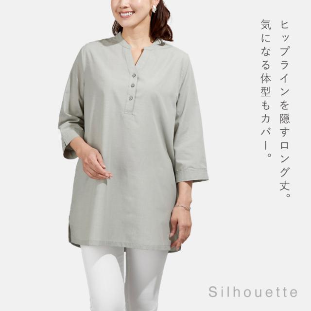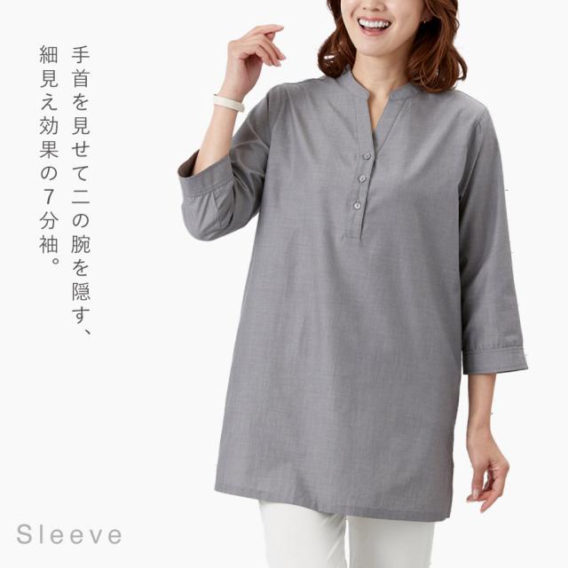チュニック 大人可愛い,チュニック 50代,スキッパー ブラウス,シャツ ブラウス ロング,チュニック,ブラウス,シャツ,吸水速乾,吸水,速乾,乾きやすい,7分袖,七分袖,スキッパー衿,スリット,形状安定,シワになりにくい,グレー,オリーブ,グリーン,緑,ネイビー,紺,トップス,お尻が隠れる,隠せる,お尻,お腹,二の腕カバー,腰回り, 薄手,薄い,薄め,涼しい,涼しげ,さらさら,サラサラ,サラっと,さらっとしている,さらり,サラリ,爽やか,さわやか,べたつかない,ベタつかない,春,夏,春夏,大人,レディース,女性,お年寄り,高齢者,シニア,50代,60代,70代,80代,ミセス,ミセスファッション,おしゃれ,お洒落,オシャレ,かわいい,可愛い,M,L,LL,3L,大きいサイズ,大きめ,ゆったり,カジュアル,きれいめ,体型カバー,コーディネート,着回し,細見え,着痩せ,着心地,