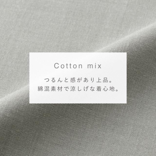 吸水速乾素材で汗をかいてもすぐに乾き、さらりとした肌ざわり。つるんと感があり細糸で織った上品な綿混素材で涼しげな着心地です。
