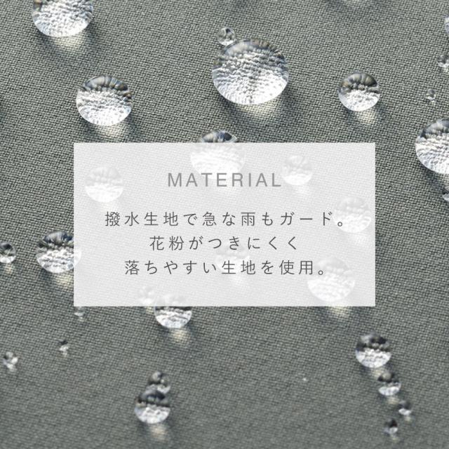 お散歩やお出かけに一枚あると便利。撥水加工のあるパーカージャケット。急な雨や、UVカット95%以上で紫外線からもカバーします。花粉対策の生地を使用しているので、花粉症にお困りの方にも◎。