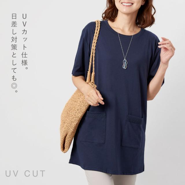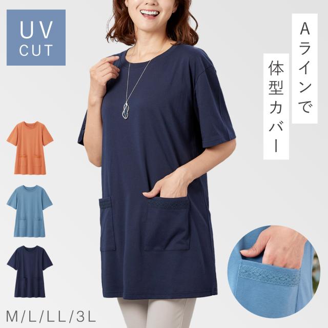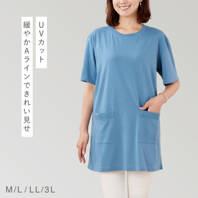 チュニック 大人可愛い レディース 5分袖 uvカット 春夏 M L LL 3L ゆったり 大きいサイズ ポケット付き トップス 体型カバー 大人 春 aライン UVカットポケ付きチュニック 紫外線カット 50代 60代 70代 ミセスファッション 婦人服 母 きれいめ シンプル メール便対応