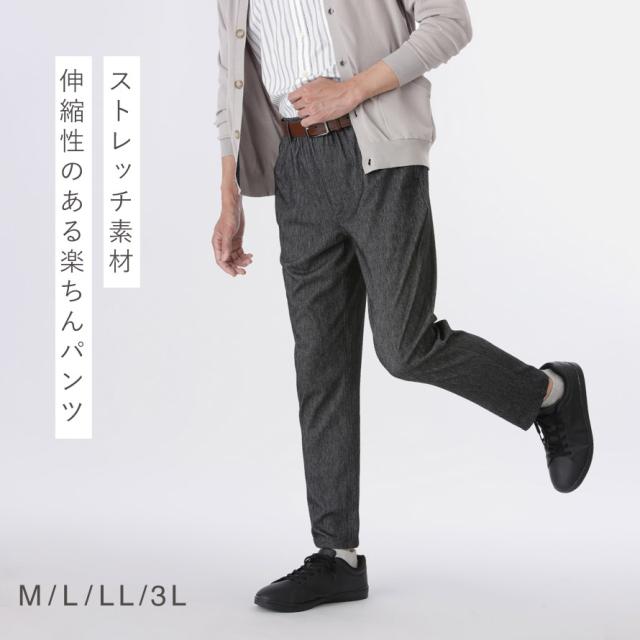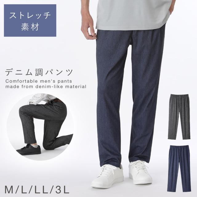 ズボン メンズ 冷感 夏 ストレッチ ウエストゴム パンツ メンズニットデニム調総ゴムパンツ M L LL 3L 大きいサイズ ゆったり 男性 紳士 ファッション
